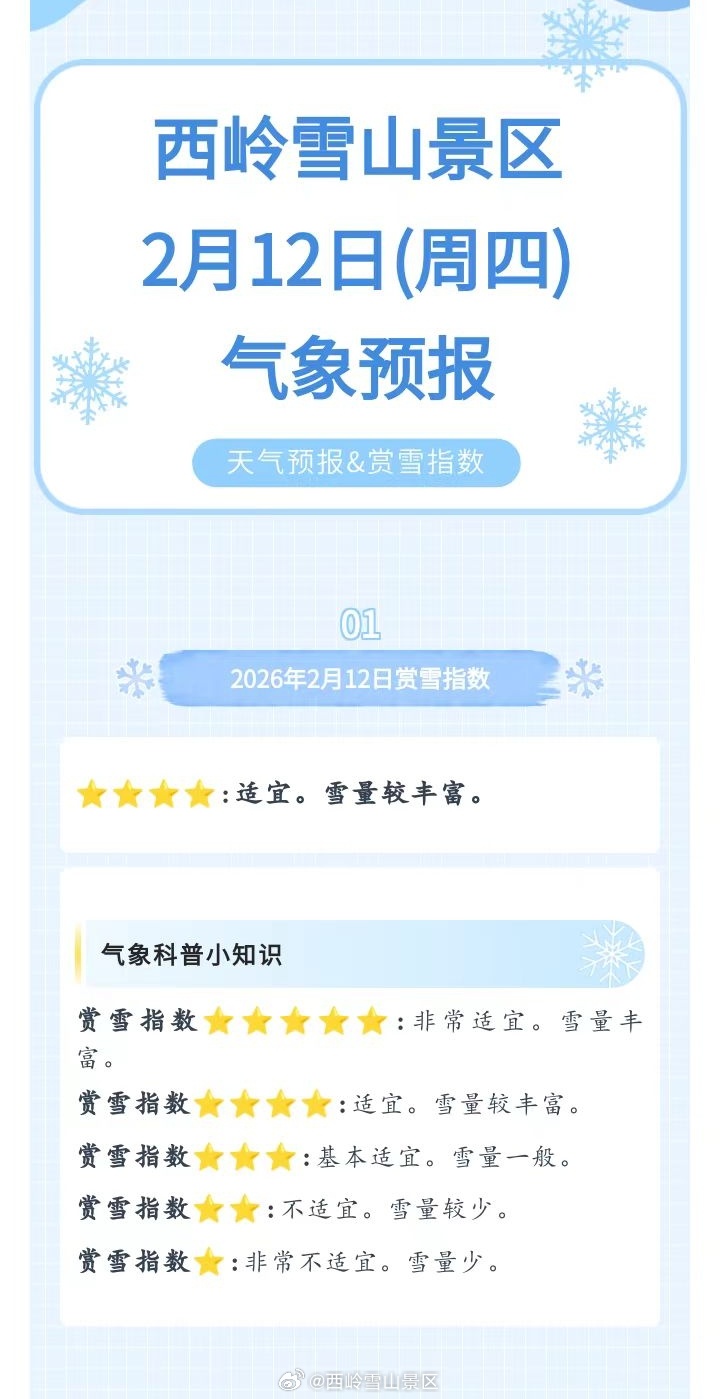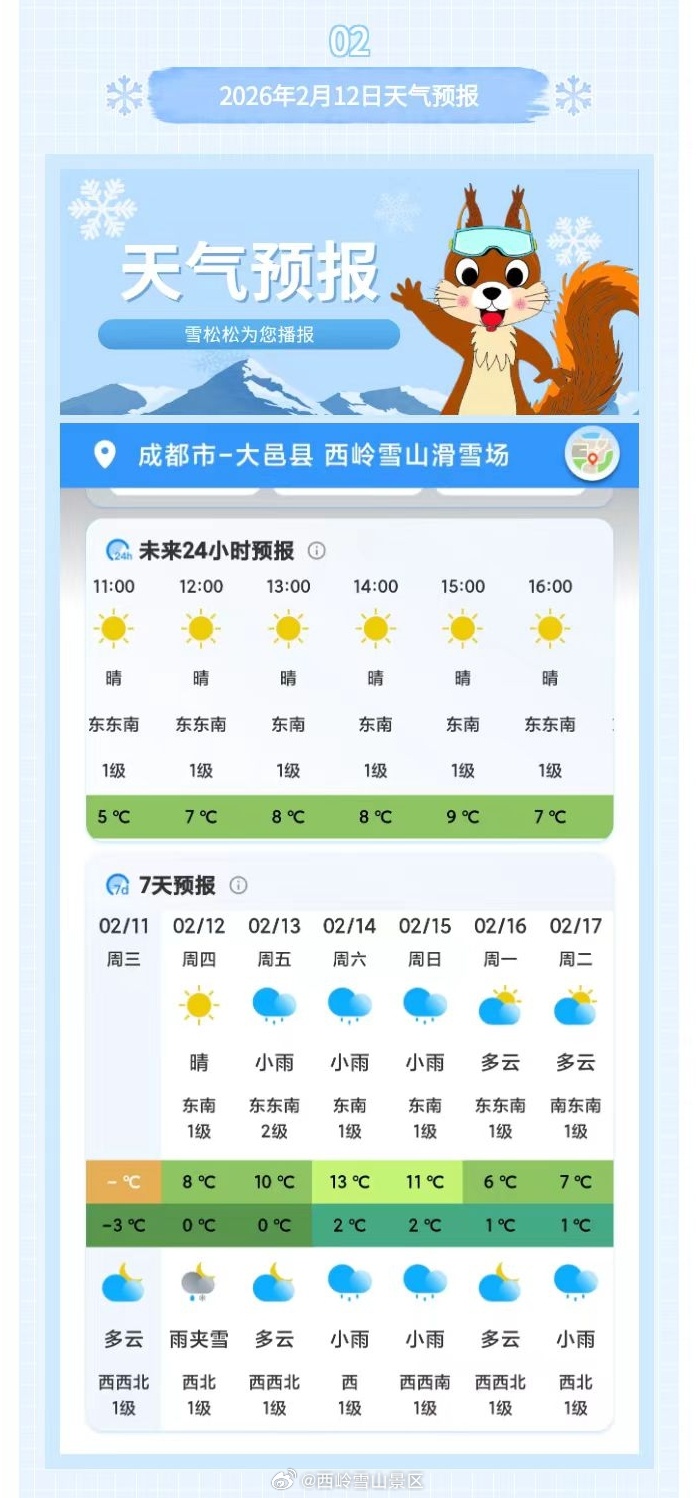 西岭雪山景区2月12日(周四)气象预报#西岭雪山##西岭雪山天气#