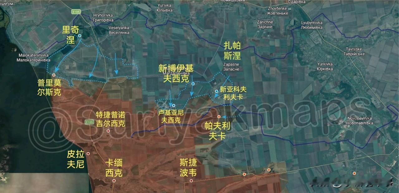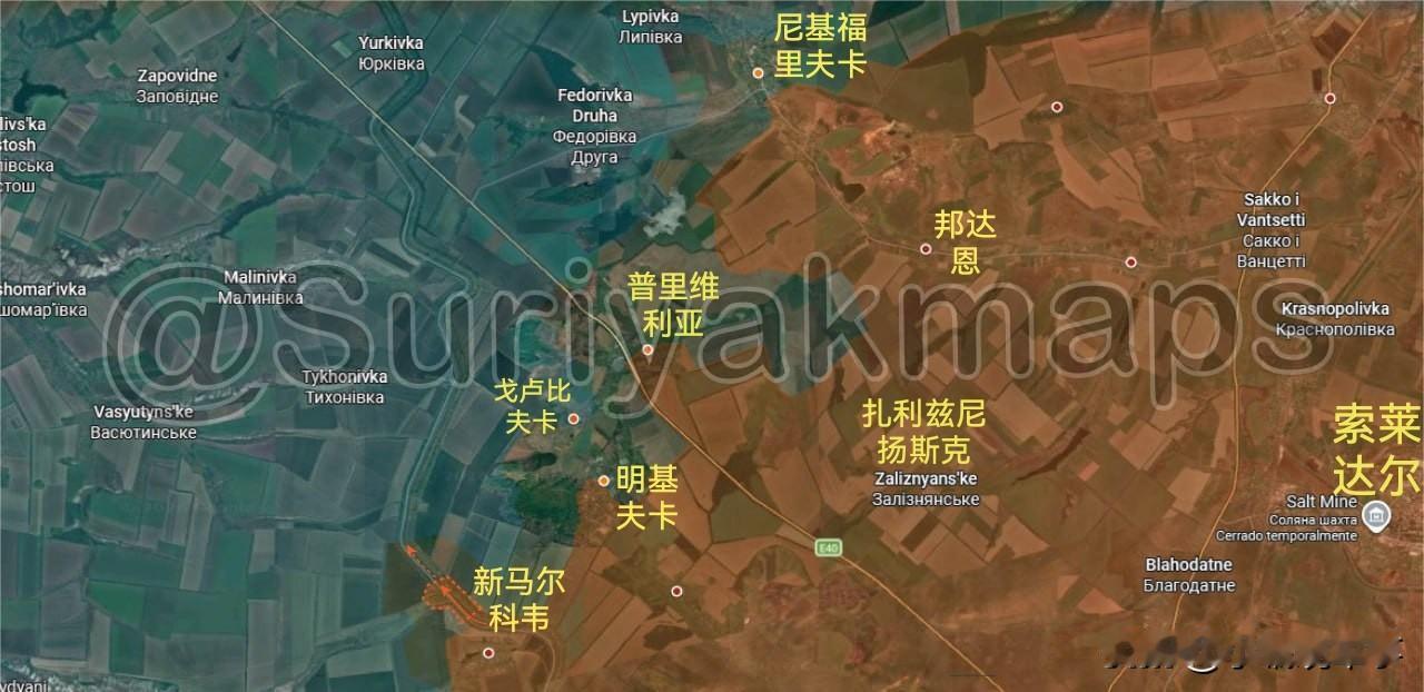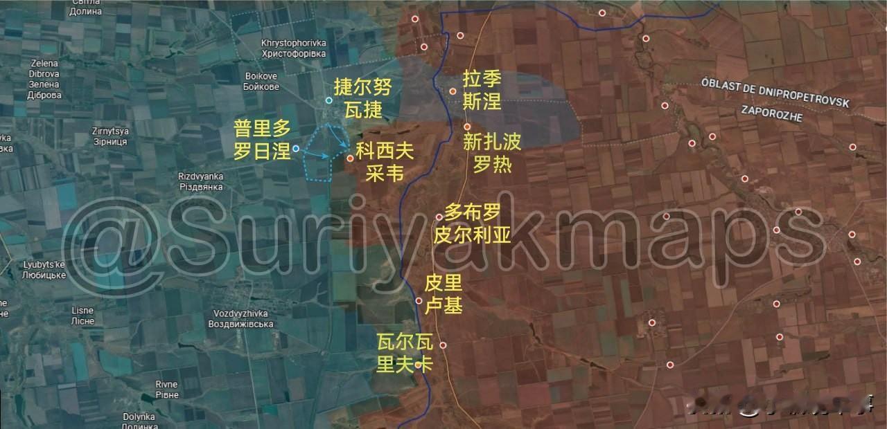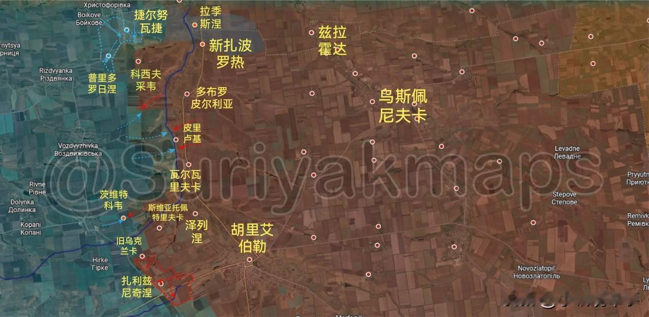 Suriyak更新2月7-10日俄乌战报(供参考): 1.扎波罗热州前线: (2月7-8日): ①过去六天里,乌军发动了局部反击,夺回了捷尔努瓦捷镇和普里多罗日涅村两地(图一)。 ②俄军已撤退至普里卢基村,并击退了乌军对该村庄的进攻(图一)。 ③关于兹拉霍达村被乌军占领的报道不实;实际上,渗透进来的乌军部队仍盘踞在拉季斯涅村和新扎波罗热村周边(图一)。 ④俄军完全控制了扎利兹尼奇涅镇,并将旧乌克兰卡村的缓冲区向铁路线方向扩展(图一)。 (2月9日-10日): ①乌军在夺回捷尔努瓦捷镇和普里多罗日涅村后继续发起进攻,以夺回科西夫采韦村(图二)。 ②过去十天里,乌军夺回了普里莫尔斯克镇北部和里奇涅村附近失去的阵地(并重新进入了无人区)(图三)。 ③乌军重新控制了新博伊基夫西克村、新亚科夫利夫卡村和卢基亚尼夫西克村,并在帕夫利夫卡村与俄军交战(图三)。 2.哈尔科夫州前线: (2月9日-10日): 博古斯拉夫卡村和博里夫西卡·安德里伊夫卡村的战斗仍在继续,俄乌两军分别在这些地区取得了进展(图四)。 3.索莱达尔方向前线: (2月9日-10日): 俄军在占领新马尔科韦村后,开始沿着运河推进,控制了那里的第一道战壕(图五)。 4.顿河君士坦丁罗夫卡市前线: (2月9日-10日): 俄军继续在顿河君士坦丁罗夫卡市东部的"Khimik"和"Metallurg"别墅区展开行动(图六1)。 5.第聂伯罗彼得罗夫斯克州前线: (2月7日-8日): 由于战场迷雾以及自2025年12月以来缺乏地理定位数据和战报,该战线情况尚需进一步核实。乌军在夺回季赫村后,继续向南推进,趁俄军在该地区兵力不足之机,于2025年12月第二和第三周先后夺回了沃夫切林区和奥列克西夫卡村北部郊区,这些区域曾一度成为灰色地带。2026年1月初,乌军夺回了奥雷斯托皮尔东部的林地,使该村部分区域重新处于灰色地带(图七)。 (2月9日-10日): 过去两周里,俄军在伊万尼夫卡村中部地区取得了小进展,试图扩大其在该村北部高地的行动范围(图八)。