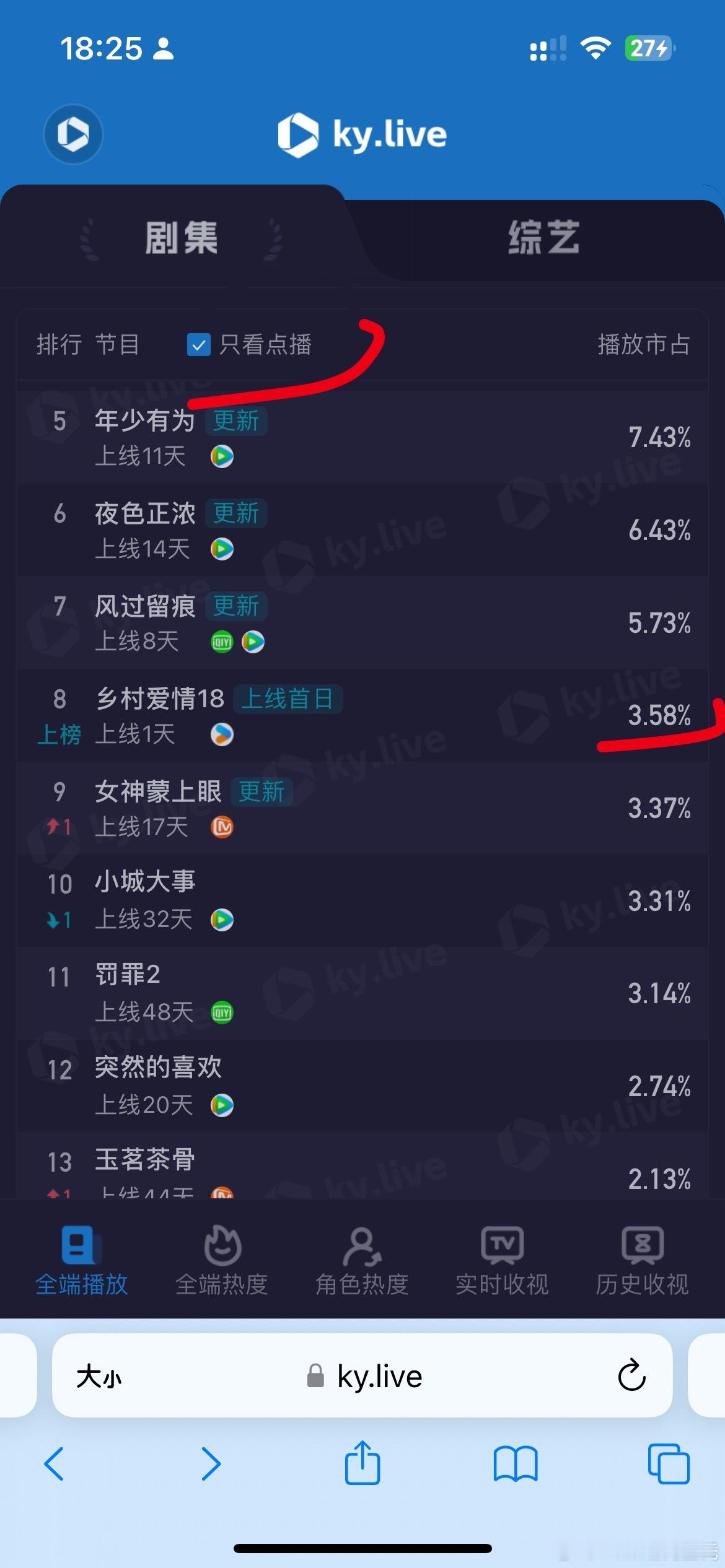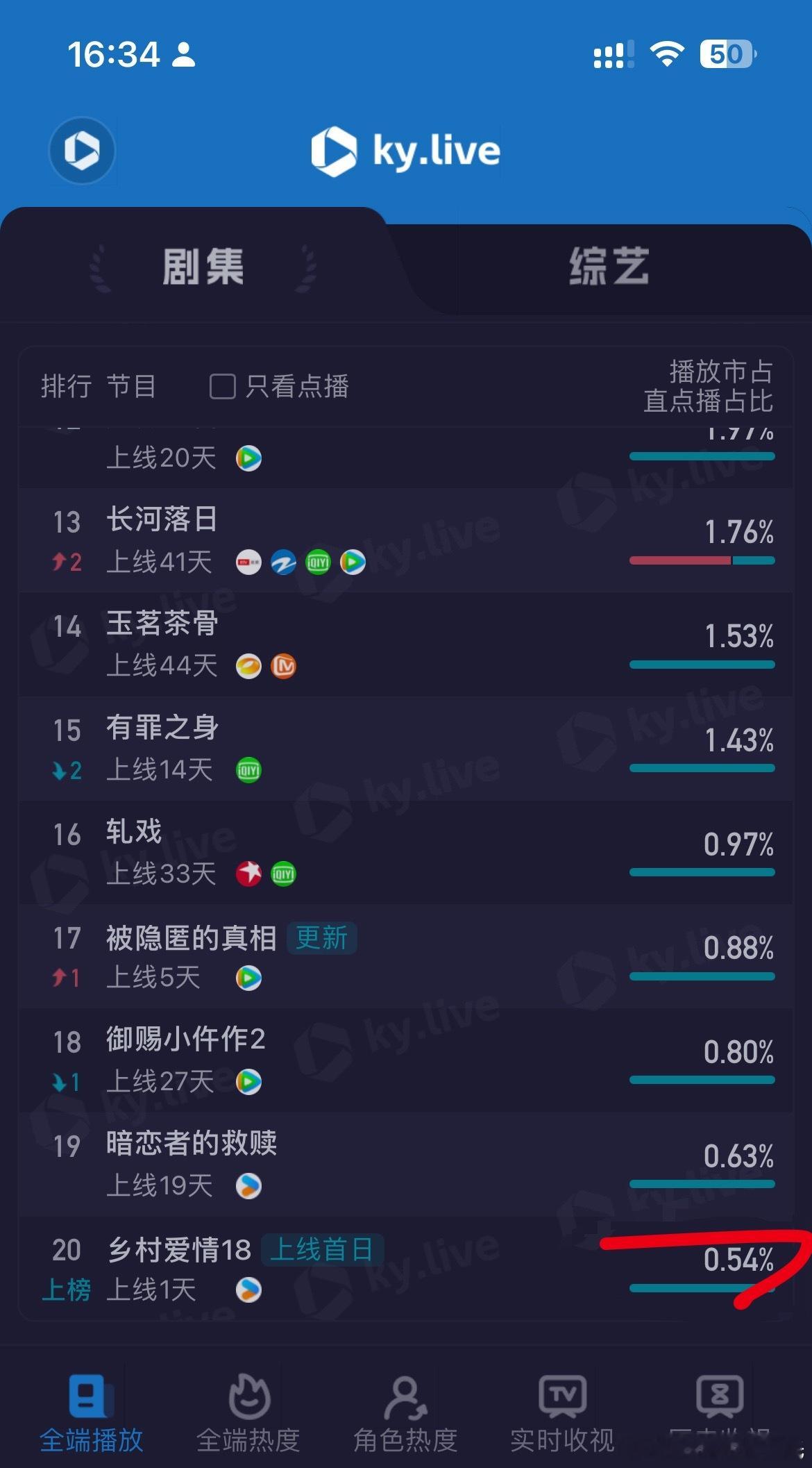 酷云官方修改了乡村爱情18 的占比……所以日榜我一会也得修正……