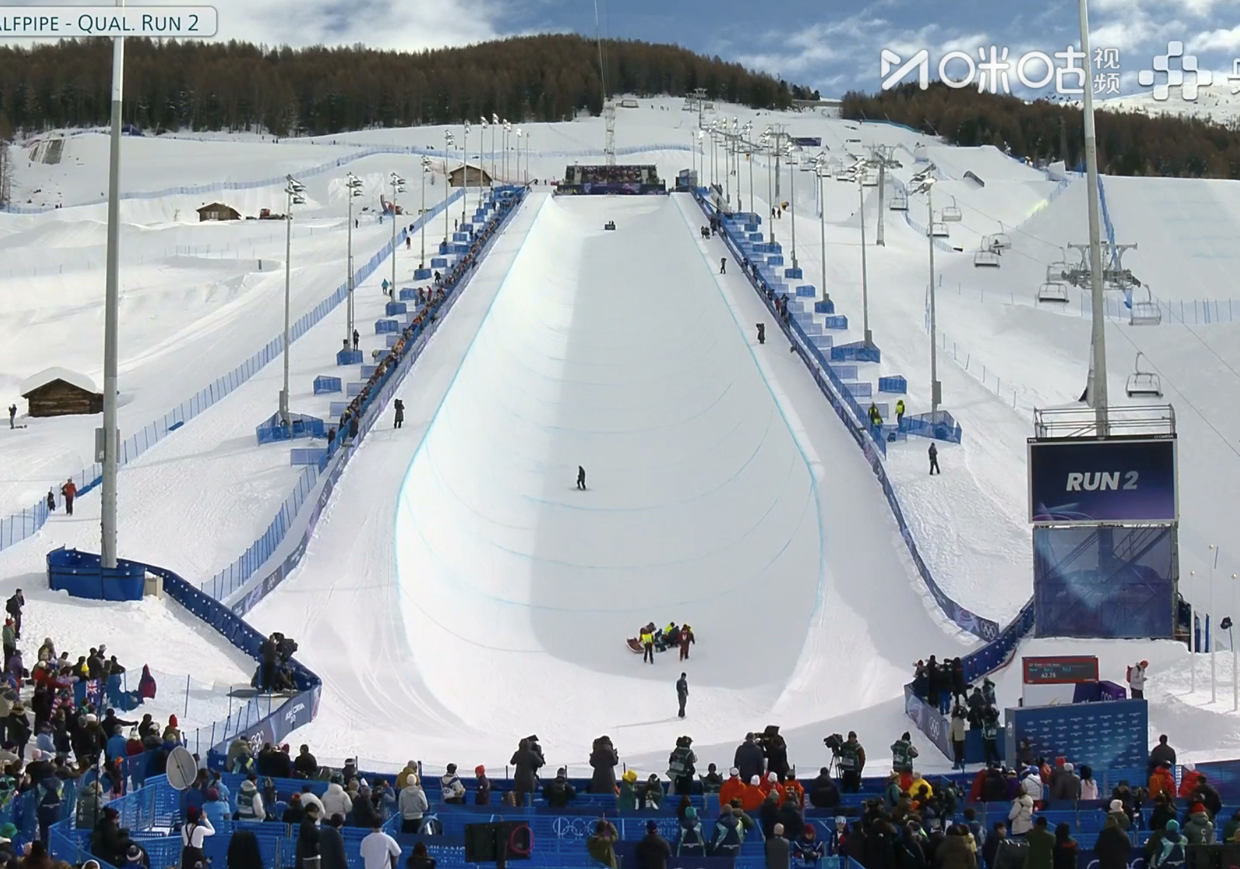 刘佳宇摔了!希望人没事!这项目好危险!刘佳宇摔倒 刘佳宇摔得好重 单板滑雪女子U型场地技巧预赛