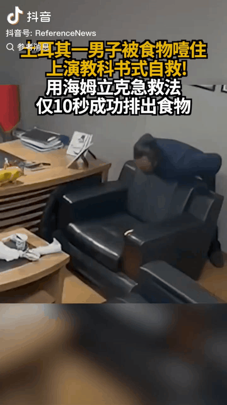 自己吃东西被卡住了,即便没人帮忙,也能自行解决! 刚才刷抖音时,看到一条视频。视频里,土耳其的一位医生吃东西时被噎住,身边却无人相助。于是,他急中生智,借助身旁的椅子,给自己实施了海姆立克急救法,成功排出了卡在喉咙的食物。 我们刷视频时,常看到有人被食物卡住喉咙后,旁人用海姆立克急救法施救。但要是自己吃饭时被食物卡住,身边又无人可求助,该怎么办呢?这个视频就极具意义,很值得推荐。我把它分享在此,希望关键时刻能帮到大家。 对此,大家怎么看?若觉得有用,不妨点个赞,收藏转发!食物卡住急救法 海姆立克防噎