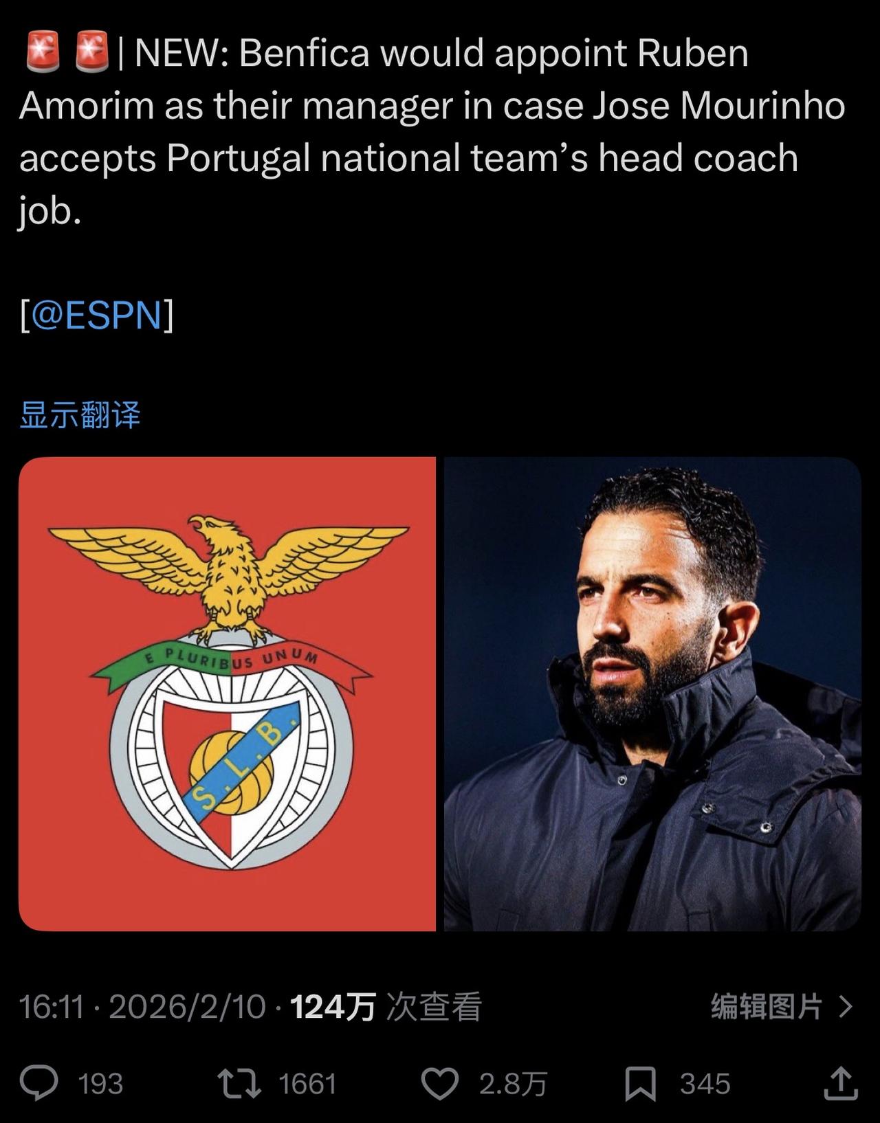 阿莫林接手本菲卡也是早晚的事,刷数据的联赛需要他。 ……………………………………………………………… 最新消息:如果何塞·穆里尼奥接受葡萄牙国家队主教练一职,本菲卡将任命鲁本·阿莫林为球队经理。