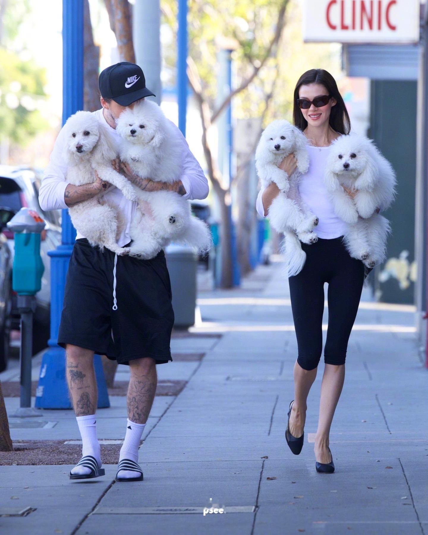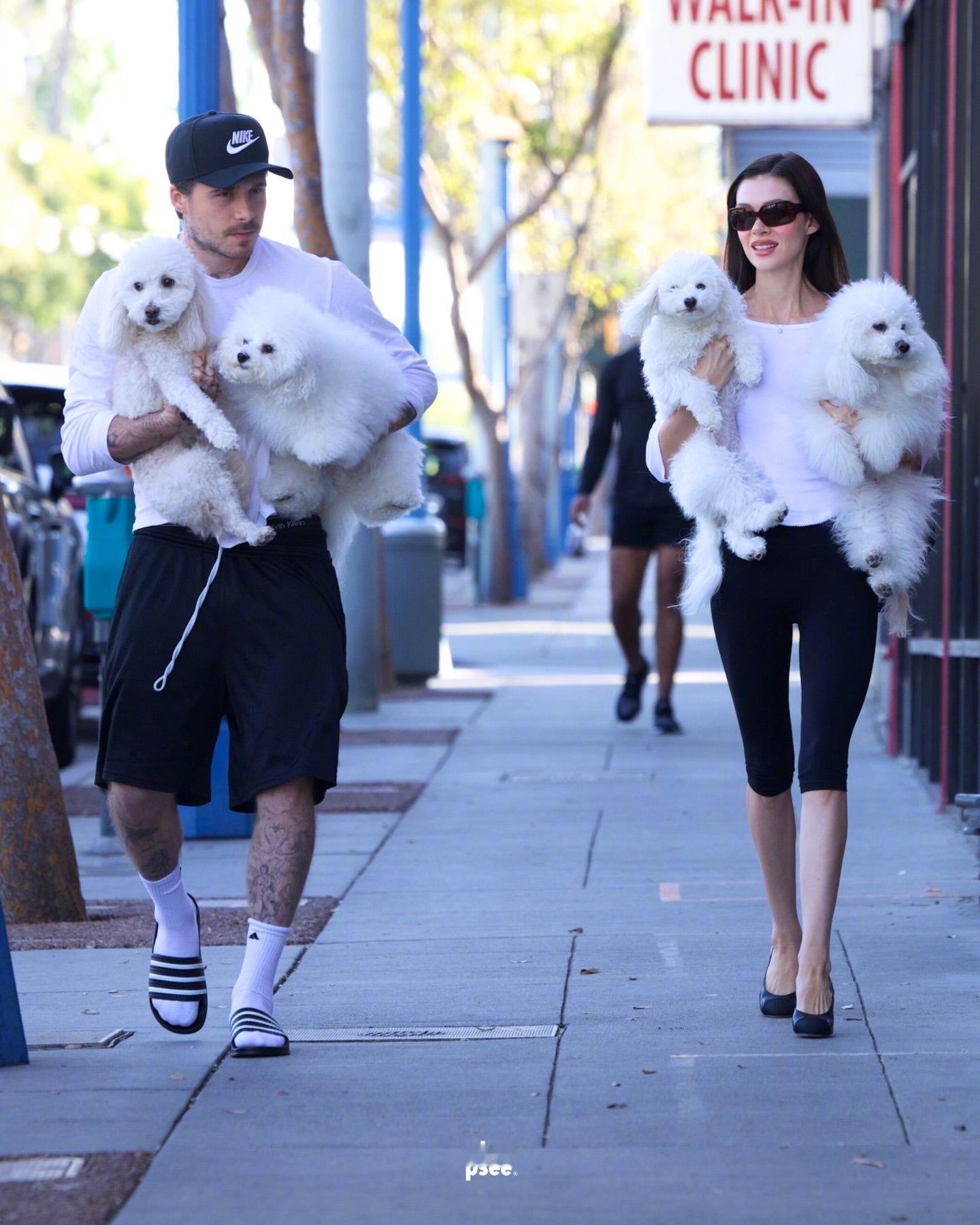 处于舆论风口浪尖的“叉烧布夫妇”布鲁克林·贝克汉姆和尼古拉·贝克汉姆高调亮相比佛利山庄。八媒的宣传文案是这样写的“这对情侣选择和四只雪白的小狗一起度过了一个下午。两人一直致力于帮助有困难的狗狗,对动物的热爱也是他们都特别关注的事业。“黑白”不仅体现在小狗身上,也成了两人造型的共同元素。”