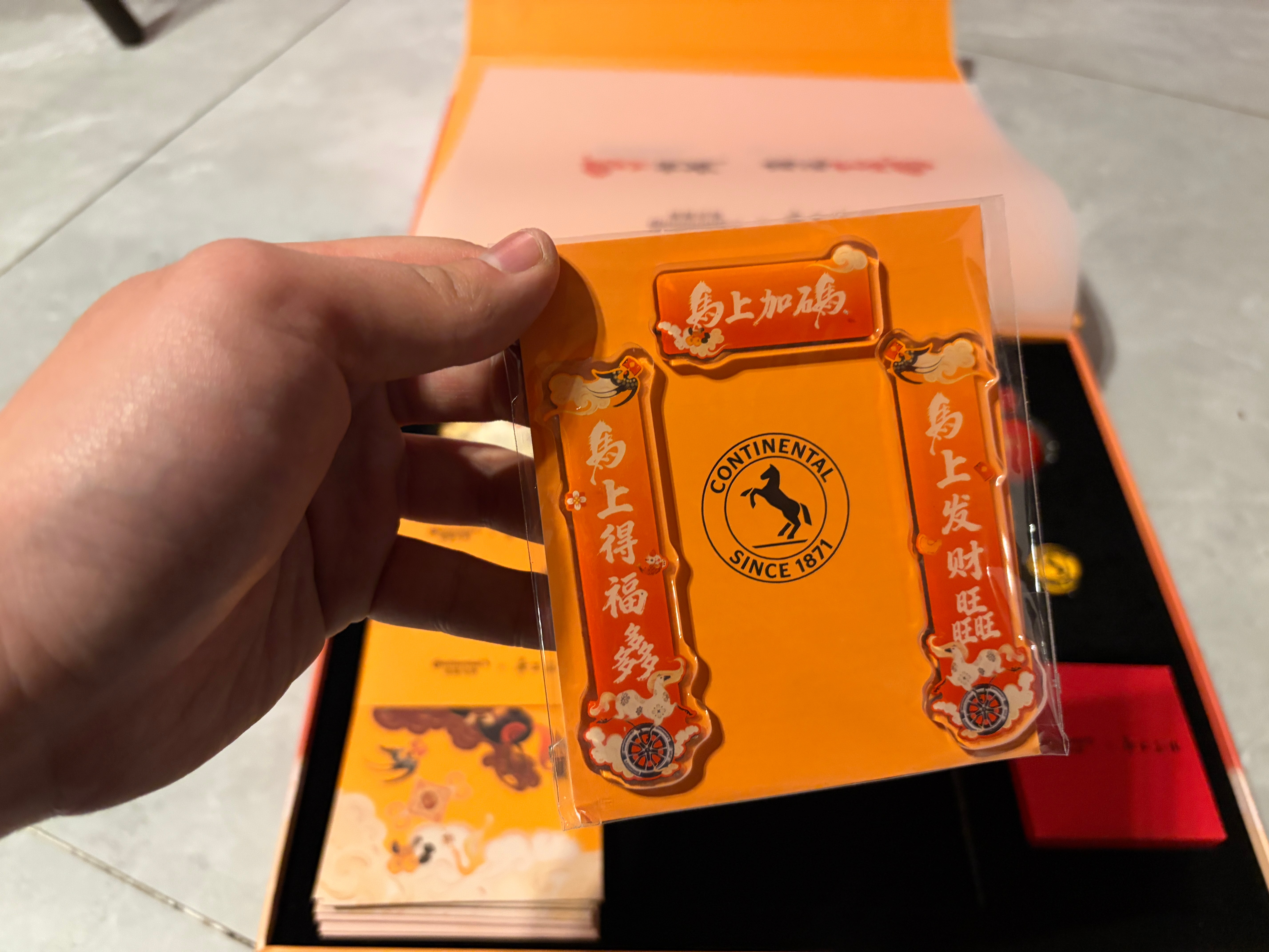 抽个奖,评论就行送德国马牌的新年礼盒有3个漂亮的冰箱贴、笔、车载香薰、红包等