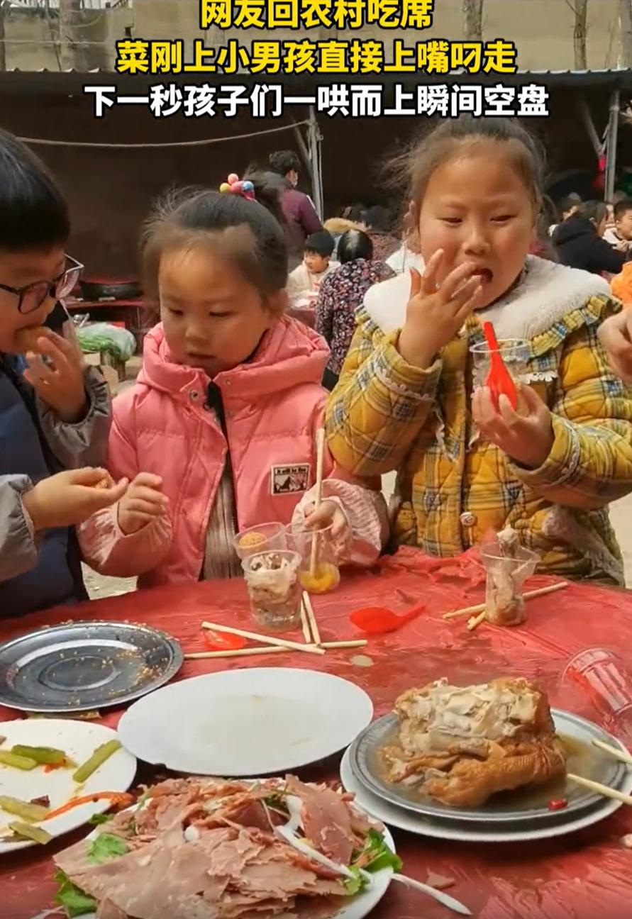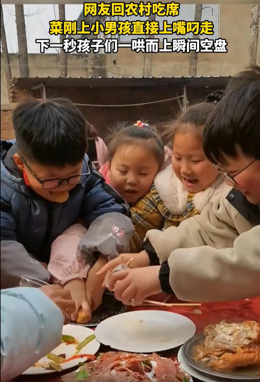 笑不活了!女子过年回农村吃席,特意找了个小孩那桌,想着这样自己就能多吃点好吃的,没想到,这桌的竞争更加激烈,上菜的小孩哥还没放到桌子上就叼走一个,放到桌子上后更是秒空,根本没给女子出手的机会 当时,坐在最外侧的小男孩看到主人家上了一道麻团,便果断起身上前去接,不过他也有自己的小算盘,他知道一旦端上桌子就会被抢走,于是直接上嘴叼走一个 而事情也和男孩预想的一样,盘子刚碰到桌面,七八双小手齐刷刷伸过来。筷子、手抓、甚至袖子蹭油都在所不惜。旁边一个小姑娘下手慢了,盘子已经空了。她没哭出声,但眼圈红了,默默舔了舔手指头 女子觉得这一幕很有趣,就把视频发到了网上,本来是想说,低估了小孩桌的战斗力,结果一些网友却认为这种行为不妥 有网友说:谁家的小孩儿,我们这边没有这样的规矩,会挨叼哟,会被说没家教 其实我不这样看,因为如果仔细看就会发现,桌子上的牛肉完完整整,根本就没人吃,小孩子只是喜欢甜的,而且孩子们参加大席就是抢着吃才有意思 大人吃席,讲究的是均匀、体面、不出格。菜转一圈,你夹一筷我夹一筷,哪怕那道菜你最馋,也得等人齐了、长辈动了筷子再说。这是一种秩序,也是一种自我克制 小孩那桌完全是另一种逻辑。他们没有表演需求,不关心谁怎么看,喜欢就上,慢了就没了。那不是抢,是捍卫自己的喜好。这种直来直去的争夺,放在成人世界叫失态,放在孩子身上叫真实 过年的气氛,更多的是亲情和欢笑,吃不吃到自己想要的,似乎也没那么重要。孩子们抢着吃的那一刻,更多的是大家欢聚一堂的“热闹”,有些东西,抢到了不一定就最幸福,没抢到也许更能让我们笑出声