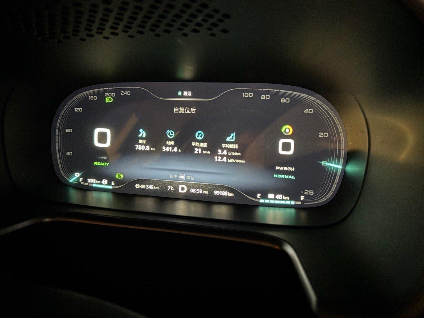 挺长时间没坐这台车了,8年10万公里,两层的后备箱轻松装下三个人出国10天的行李,语音导航到浦东T1,表显63的纯电续航还剩57km,底盘松散得比较厉害。能耗见仪表,小计里程过了10000lm之后显示有点问题。
