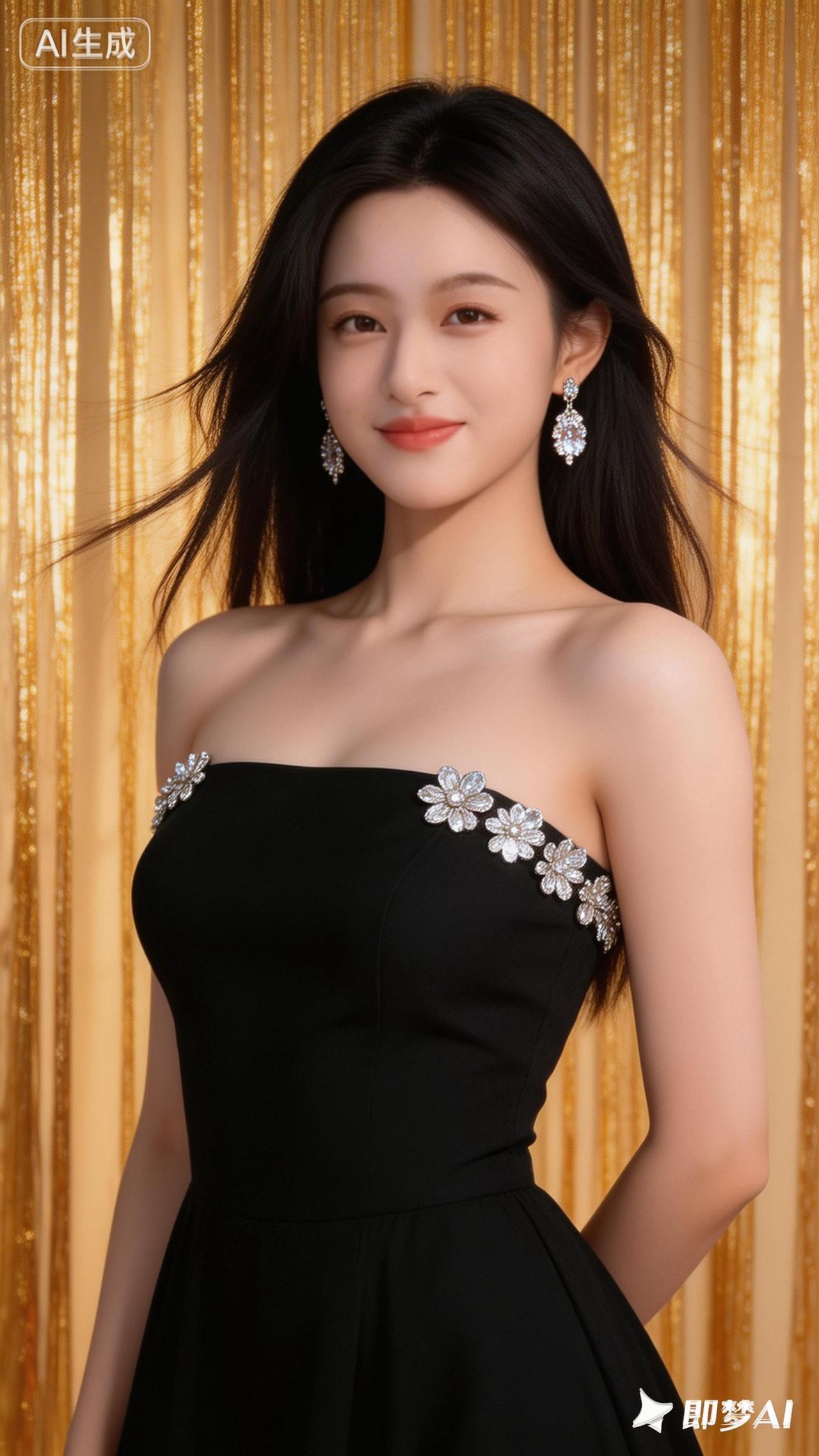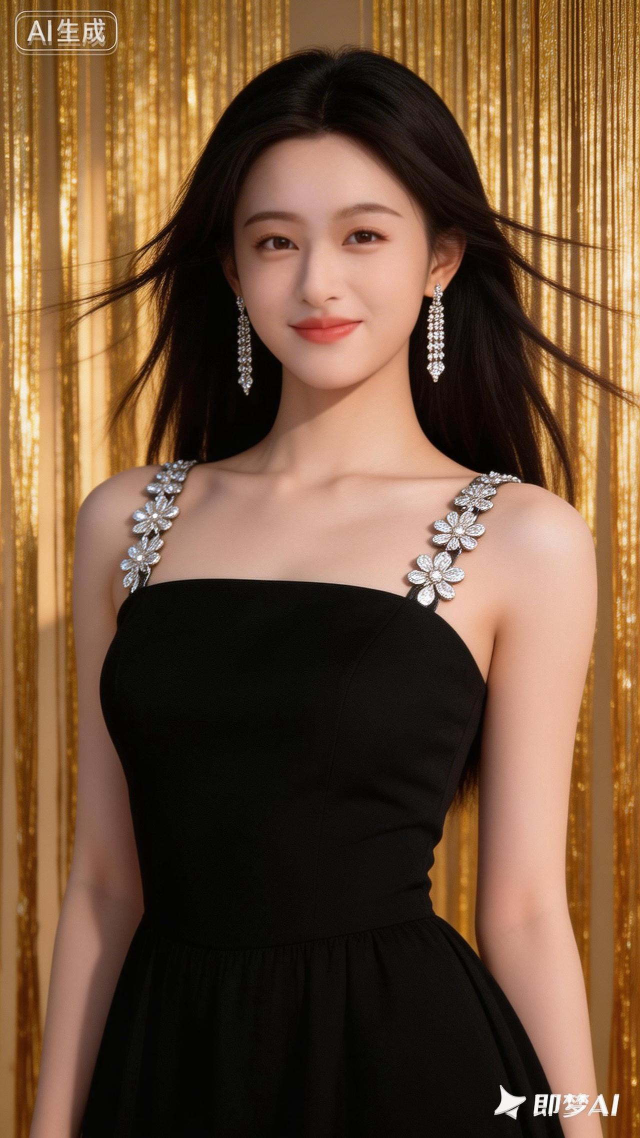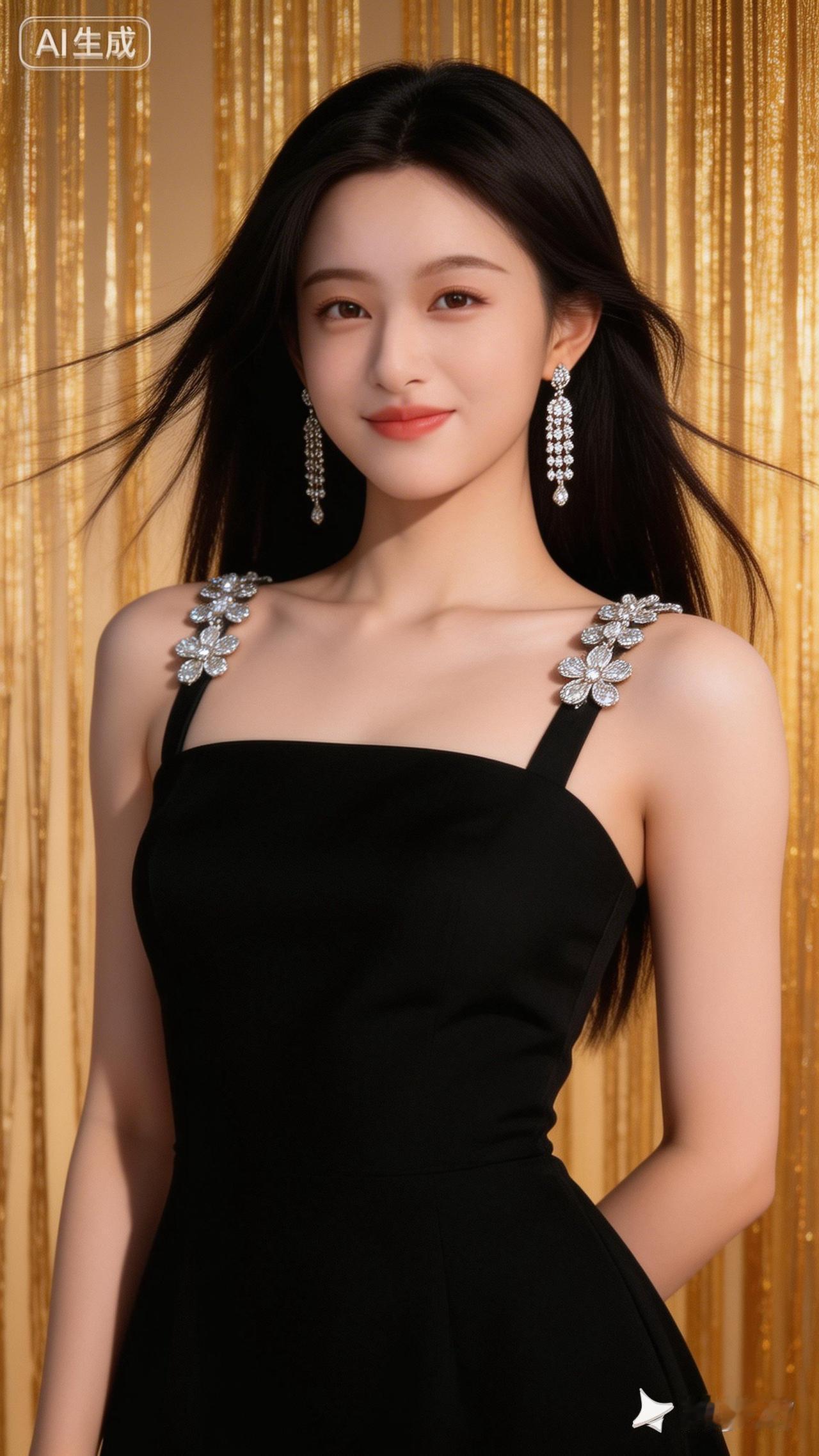 优雅黑裙,闪耀耳饰,尽显迷人魅力!💃✨