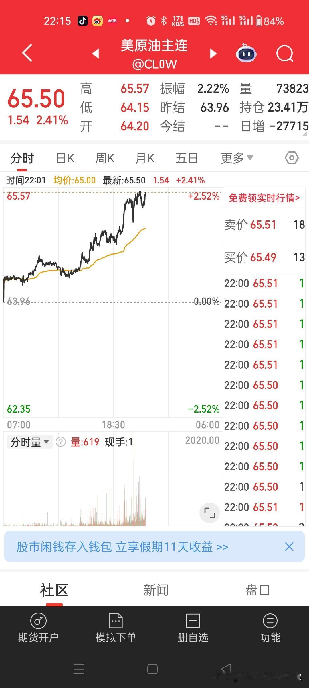 瞧瞧2月11日原油期货这走势,某些地方怕是要出状况了,大资金向来都能先知先觉。
