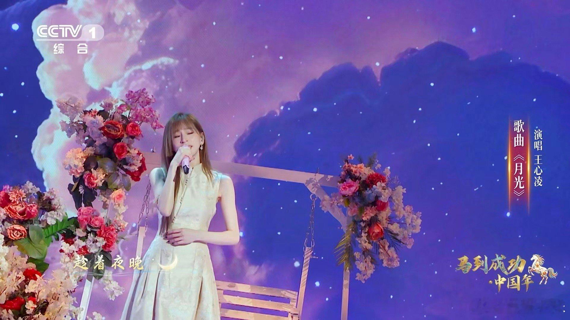 王心凌鲜花弯月舞台超梦幻王心凌再唱月光 十八年前的月光,今晚依然温柔。站在鲜花簇拥的弯月下,把同一首歌唱给不同时空的我们听。原来真正的经典,是每次响起都像初见。