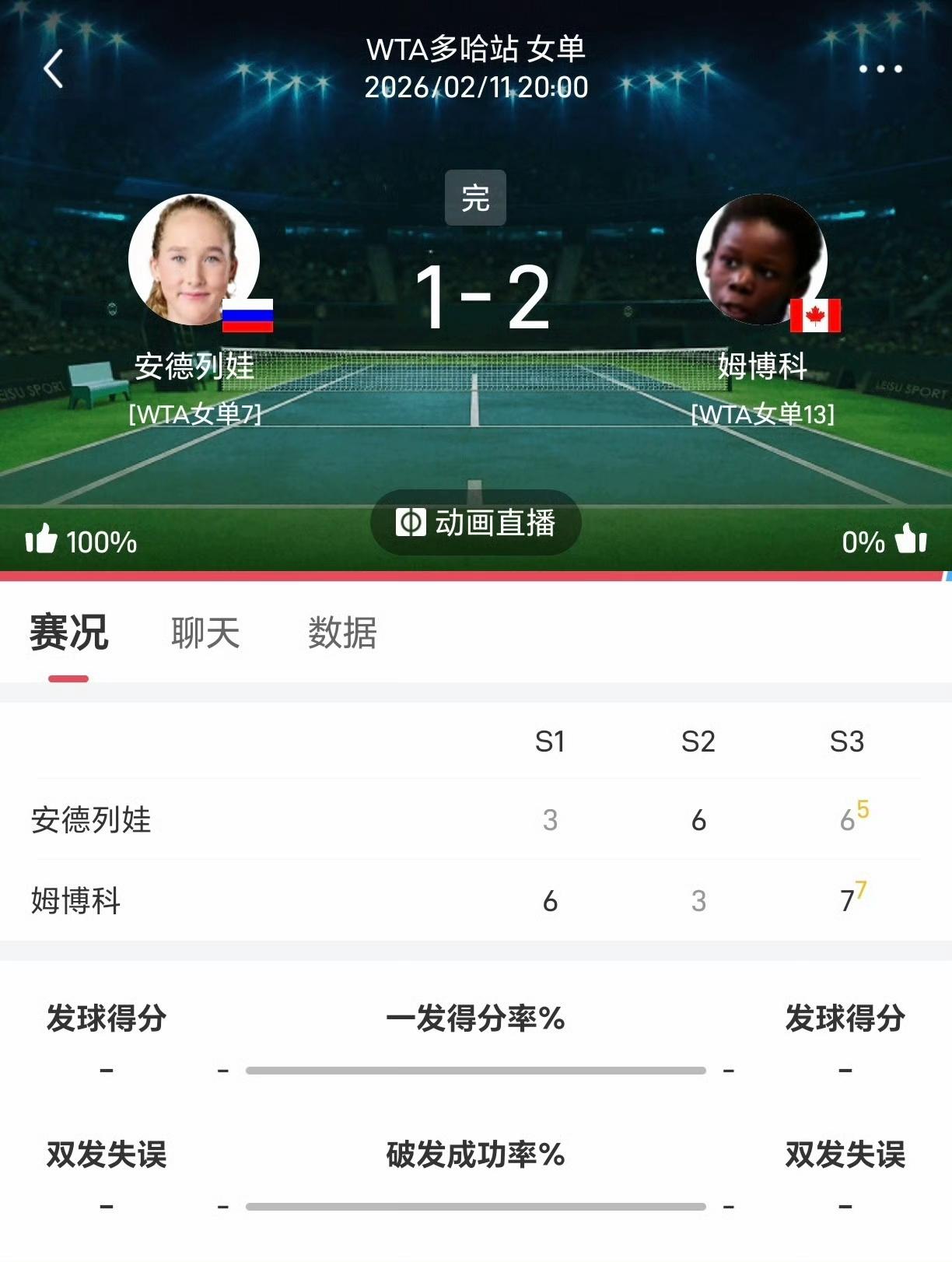 小米辣又被打哭了!WTA1000多哈赛女单第三轮,博姆科6-3/3-6/7-6 (5)险胜安德烈娃。 安德列娃赛点上发双误,被拖进抢七败北。而且安德列娃接下来有2000巨分需要保。 奥斯塔彭科继上一轮质疑裁判,今天再度质疑电子鹰眼!最终奥胖6-3/6-1横扫奥索里奥。