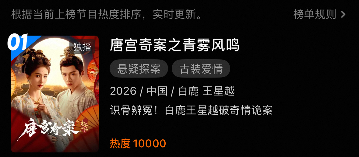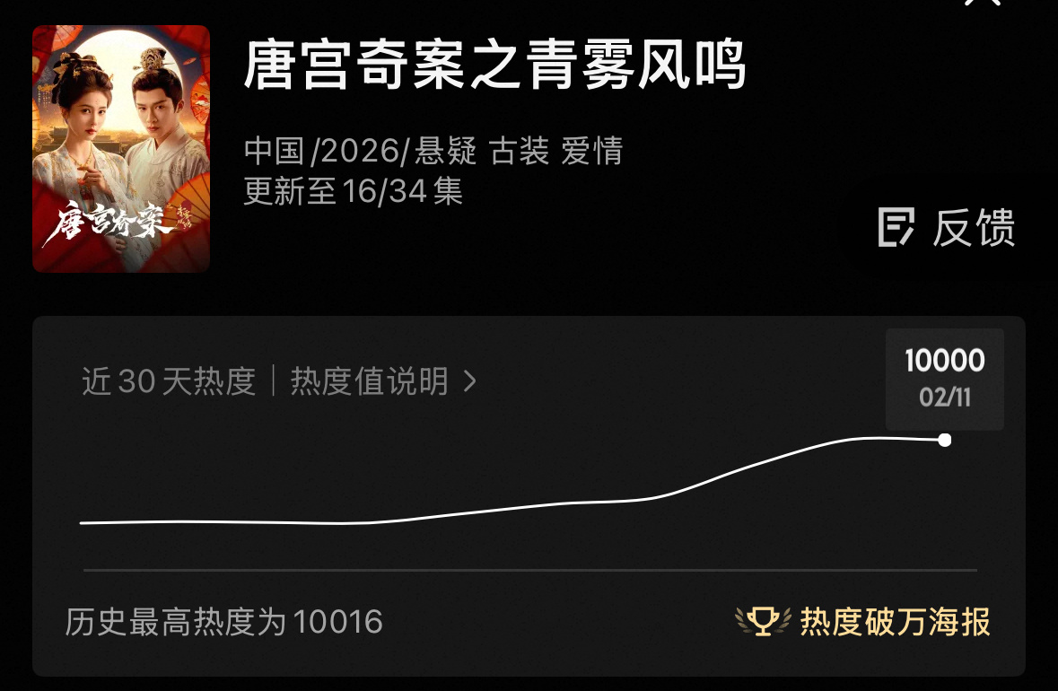 让我们再度恭喜这个唐宫奇案工作日再度破万🔥👖站内热度连续4天破万👖拉新年榜昨日进榜 今日已连升3名灯塔也稳步上升中 大家不要停继续发弹幕评论 今日还有时间再冲冲 很有用!!🫶🏻🥺唐宫奇案剧情好看吸引人 白鹿李佩仪演技好吸引人 唐宫奇案值得更好的冲冲冲