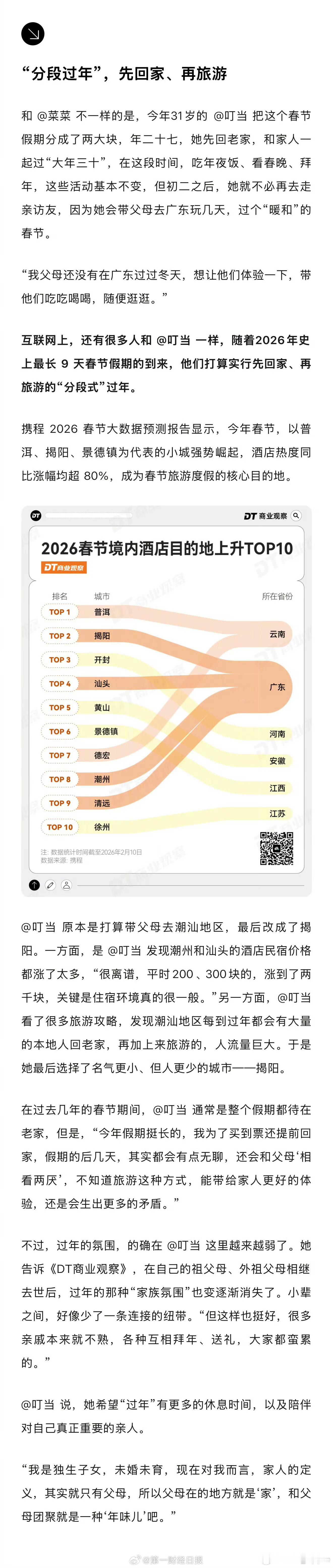 一大批年轻人开始反向过年 反向过年挺好的 带着长辈在自己生活的城市感受不一样的年味 还能免去做饭做菜的辛苦 省心又省力