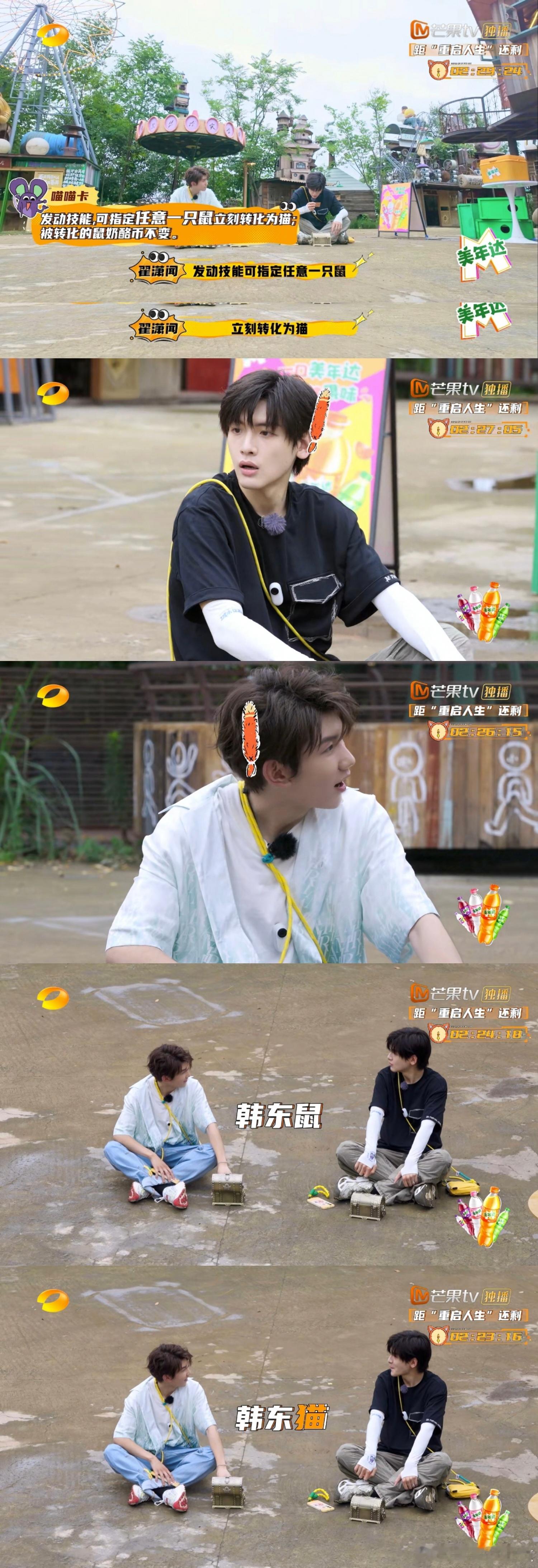 我要笑晕了,韩东君开局一个鼠身份被抓变猫结果他们做任务重启身份又变回鼠,结果转头就又变成猫,结果又被鼠队友复活了复活还没多久又变猫了,家🐰坎坎又坷坷,其实我感觉最好笑的点是他每一次变身份都快速又好平静的接受了事实。