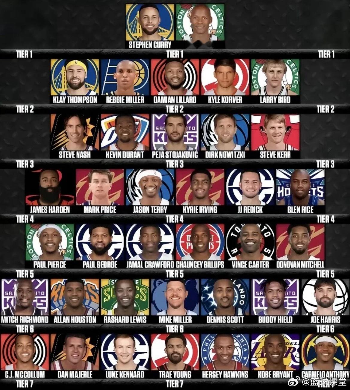 NBA最新三分球能力值排行榜,谁高了谁低了?