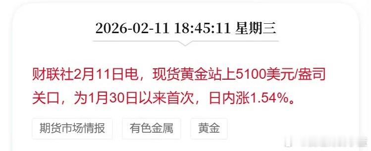现货黄金站上5100美元/盎司关口
