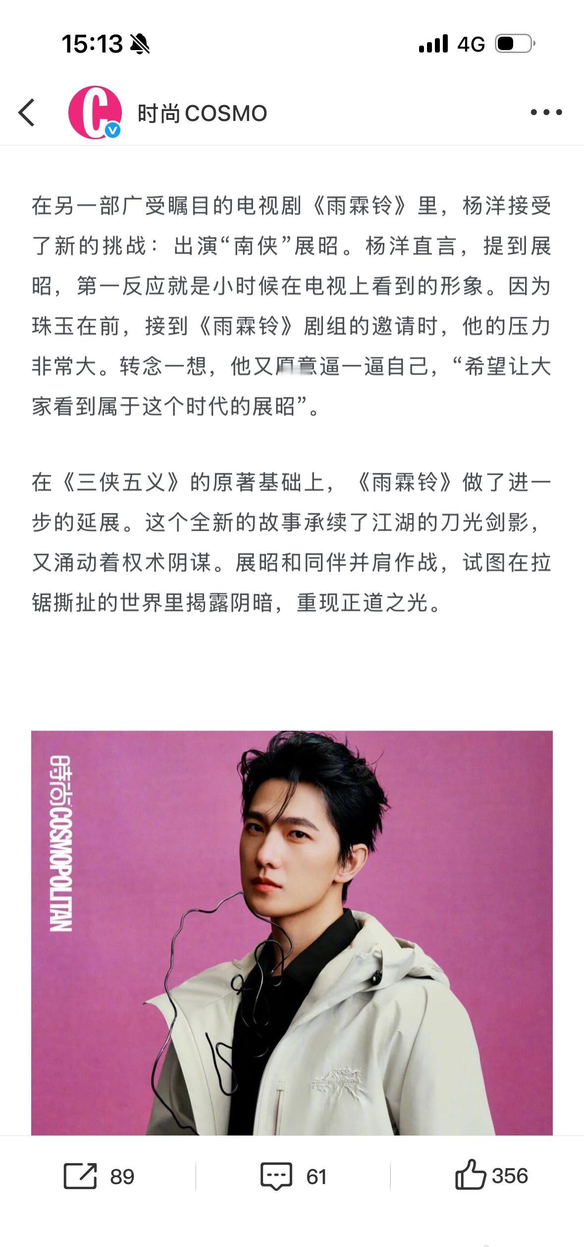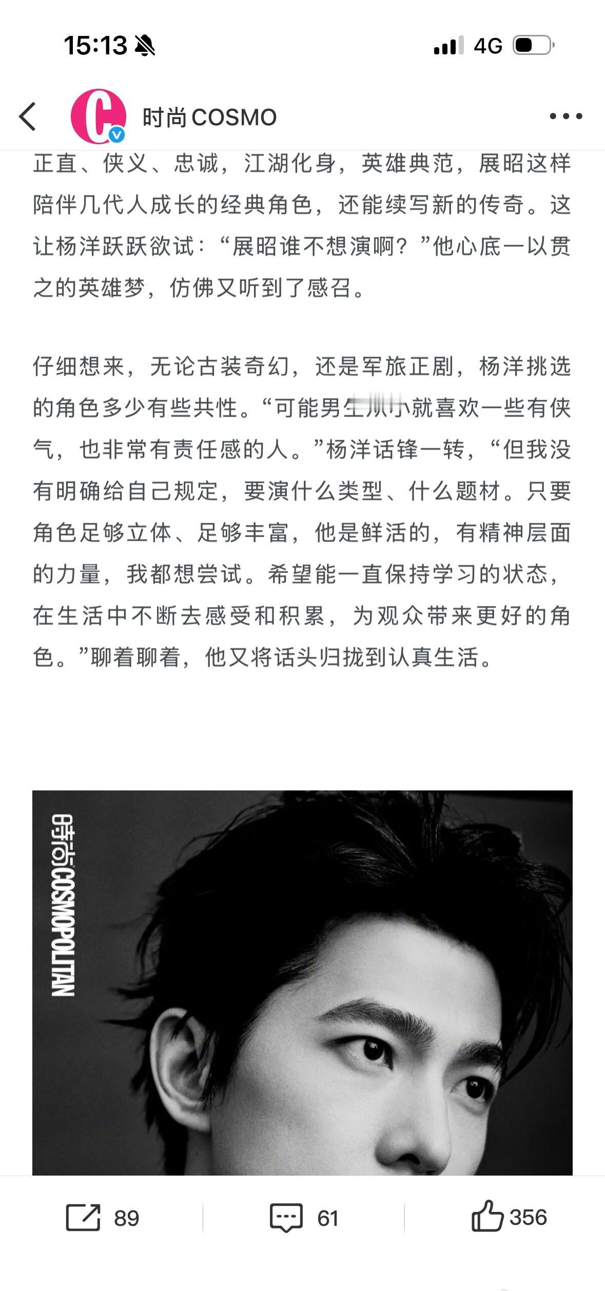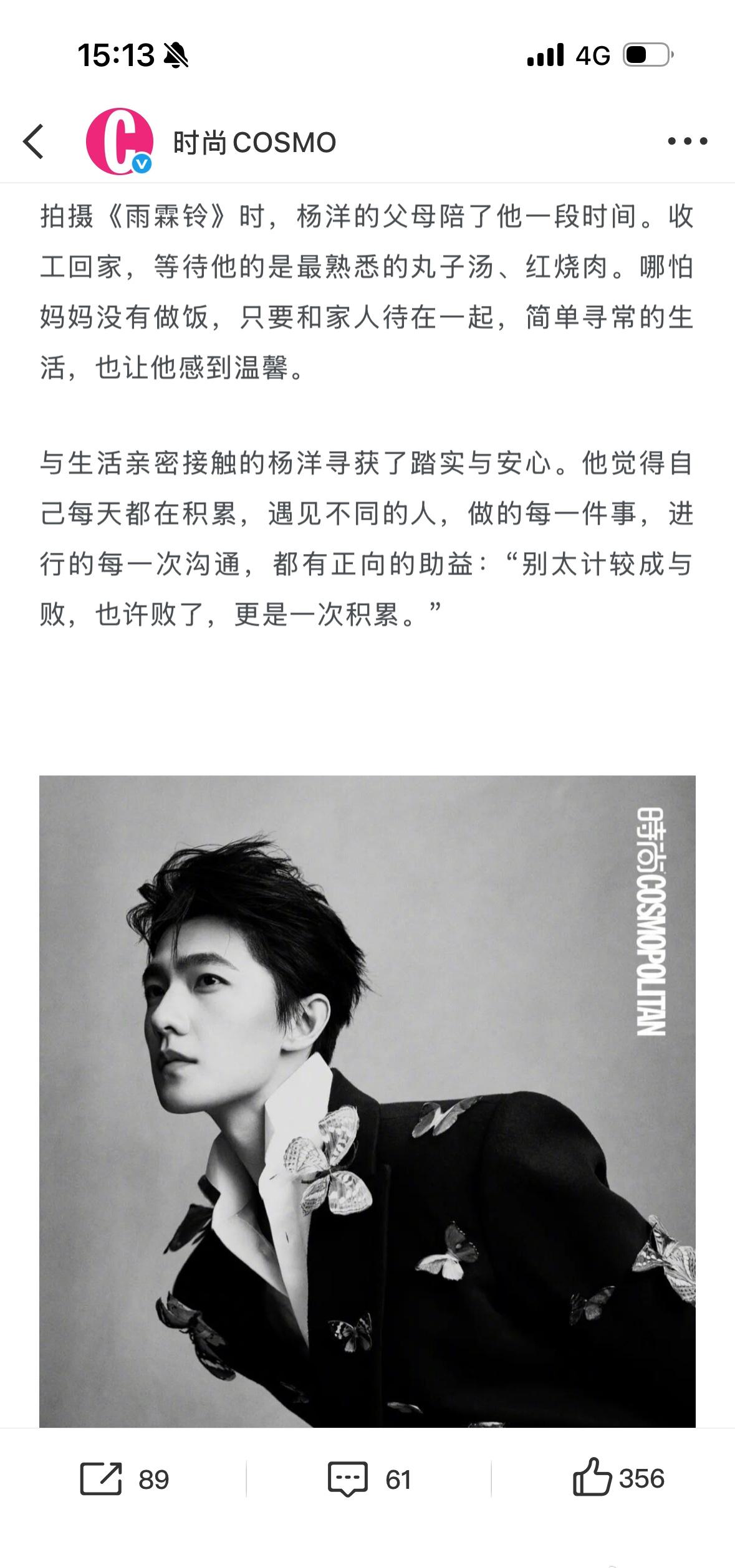 雨霖铃的时候爸爸妈妈陪了他一段时间 还给🐏宝做了红烧肉丸子汤[爱慕] 收工回去跟爸妈在一起真的很幸福 这次不让江山在横店爸爸妈妈会不会也来呢 杨洋要把世界多翻几页杨洋时尚cosmo2月刊封面杨洋