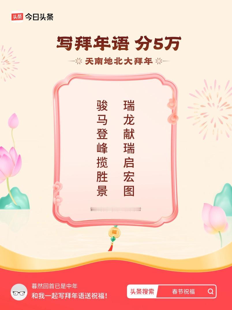写拜年语送祝福新春拜年送祝福!我的祝福是:“骏马登峰揽胜景,瑞龙献瑞启宏图”!快