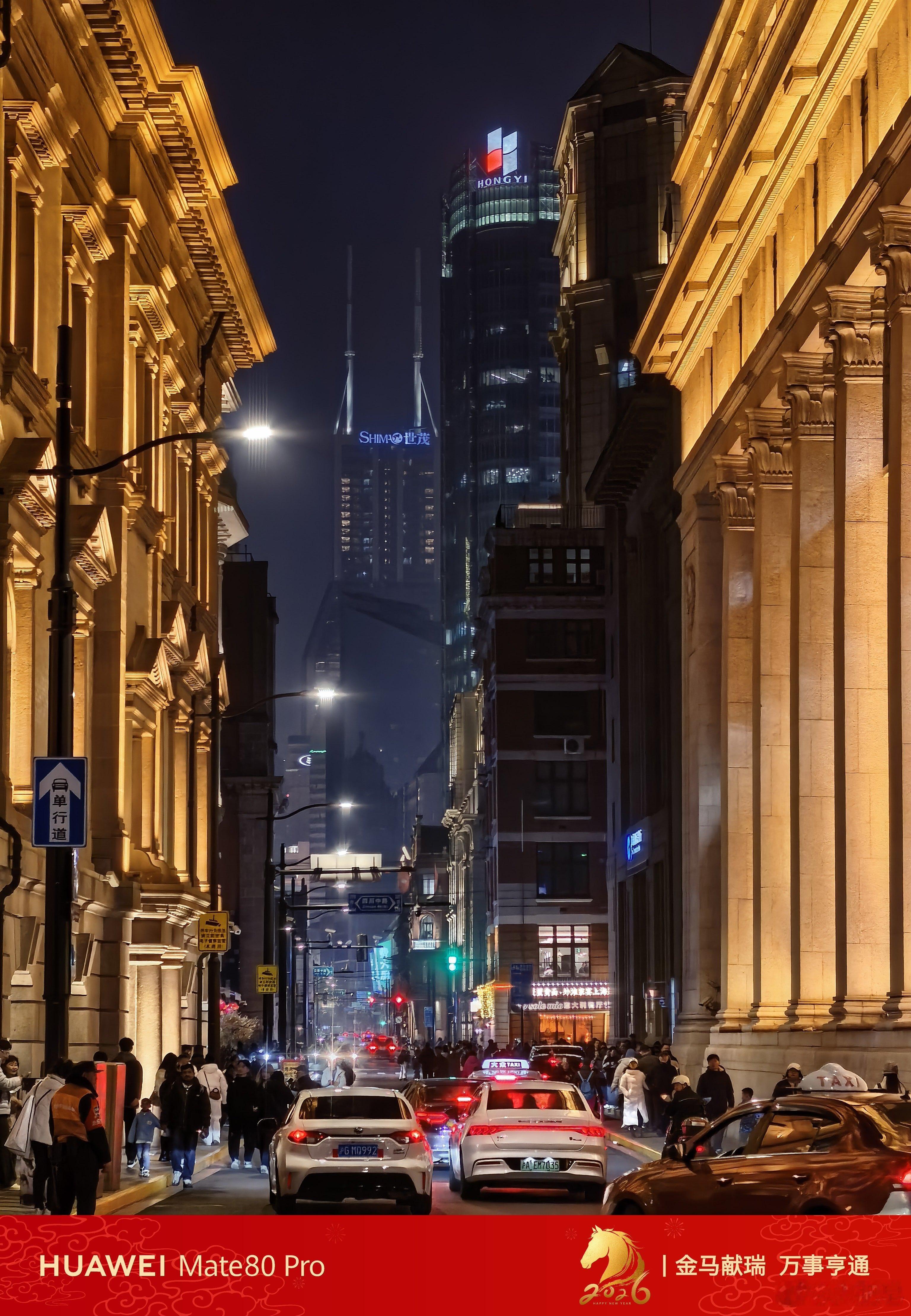 华为也有新春水印,我这次还是用华为Mate80 Pro拍一些上海的夜景,新红枫影像对色彩精准度控制是真的自然,白平衡控制的超棒。当然啦,外滩附近的年味还是不如古镇那么浓,但……人多啊,这就是气氛,哈哈哈。欢迎大家过年来上海玩~