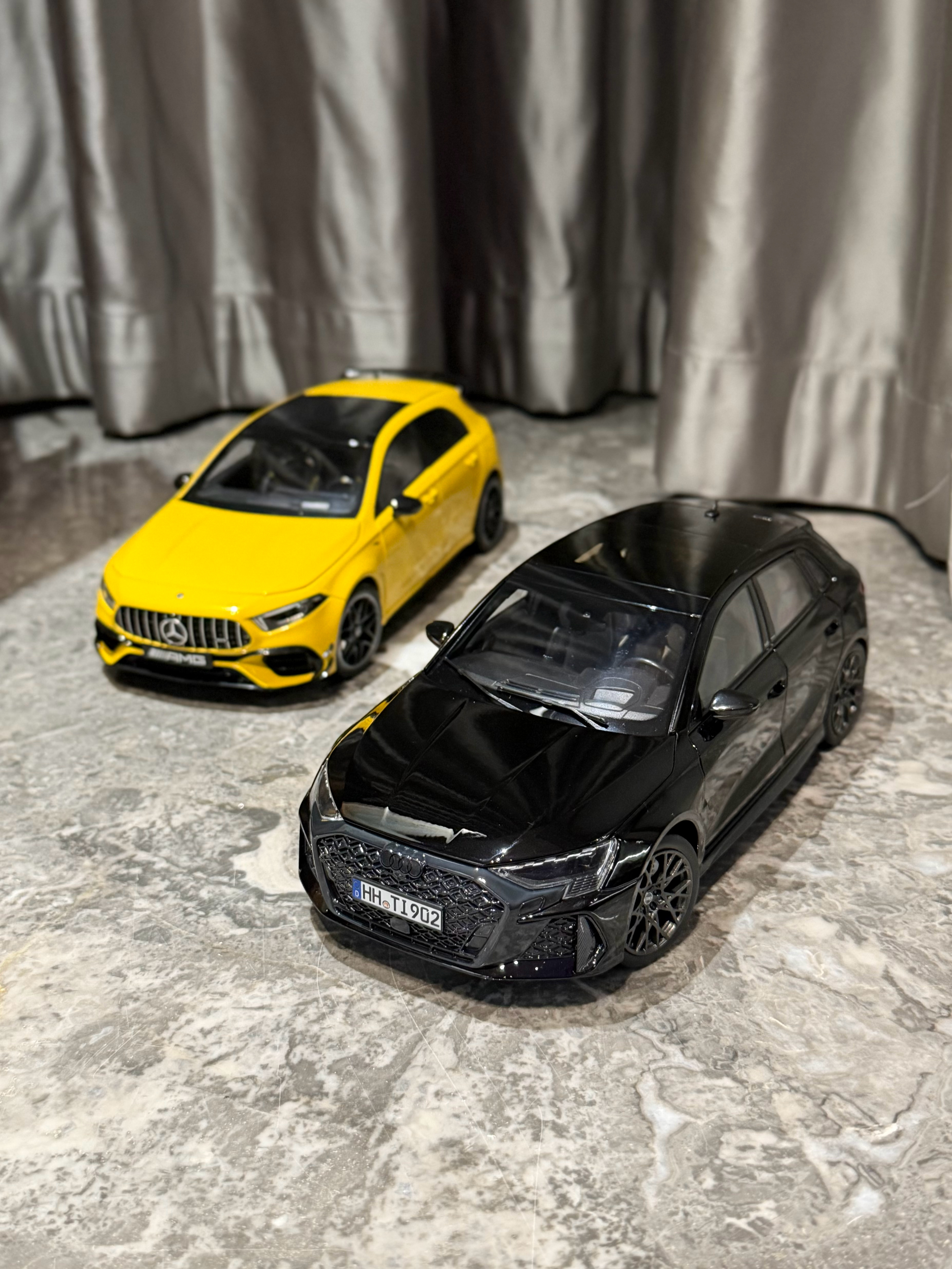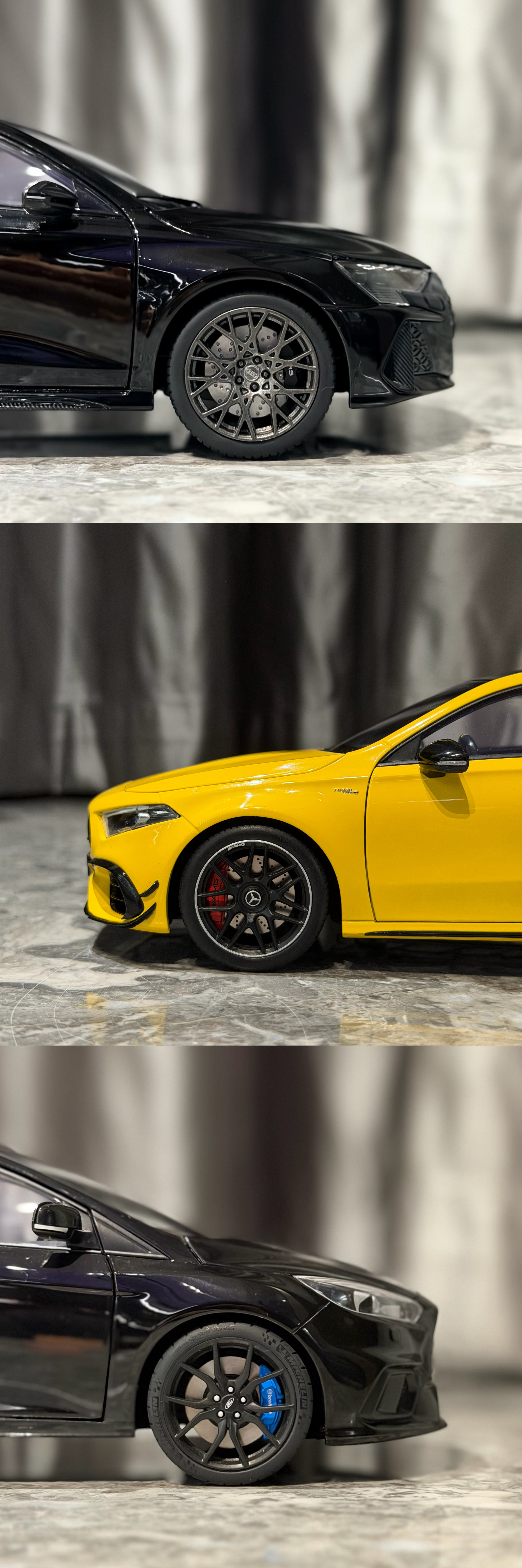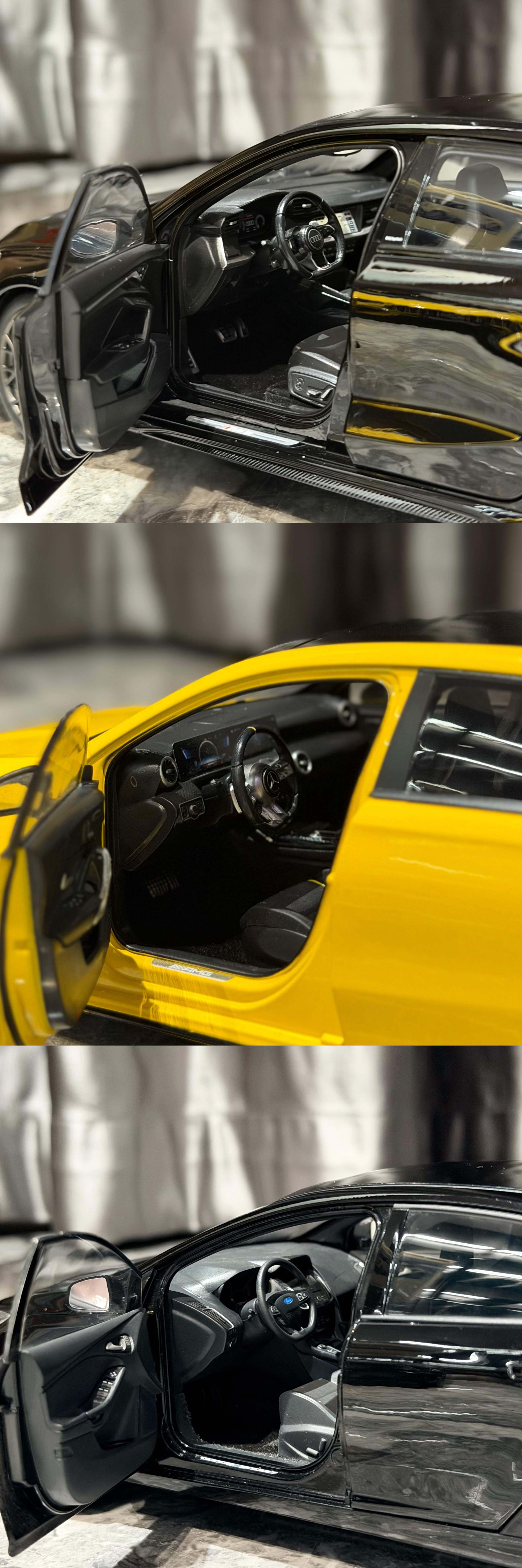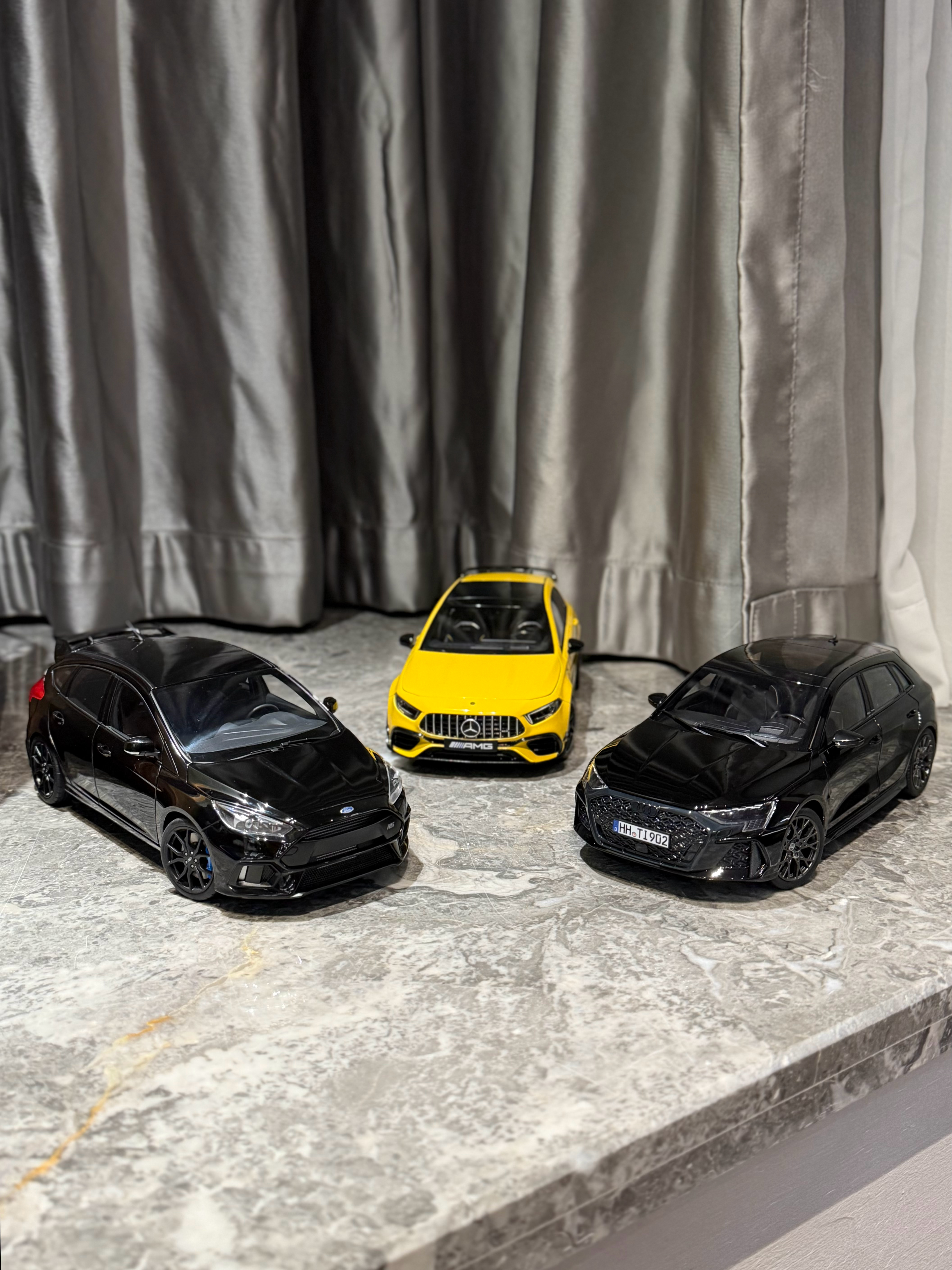 Sergio的摄影库 模型分享PT57-1/18全开的几台小钢炮们18全开小钢炮们在市场上陆陆续续越来越多了,对于我们这种喜欢小钢炮的人来说真是开心Norev这台最新一代的RS3出的很出乎意料,也很惊喜,这一代RS3的设计一直深得我心,且纽北还能出成绩,虽然实车不进国内,但起码能收到模型了做工中规中矩,颜色目前只有这个黑色,不过不到5张的价格真的香齐辉这个A45S应该算是这三台里面热度最高的,出到现在也陆续刷了不少颜色,做工也就正常齐辉水准,外观缝隙略大,方向盘的银色分色感觉分多了,有点怪,不过整体内饰质感,还有一些细节处理还不错,而且拿在手里贼有分量,比较加分而福克斯RS作为AA出品,毋庸置疑外观工整度肯定是三台车最高的,看着就舒服,不过这台车的内饰AA居然少做了一个三连表,也是真的离谱,但好在这车现在也特价了,7张不到的价格收型还是不错的