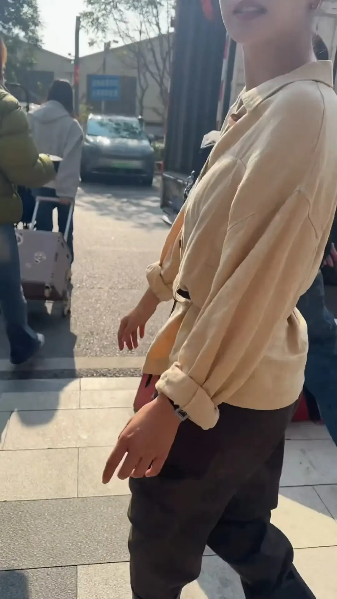 张天爱跟素人合影,胯真的好宽,大宅院似的