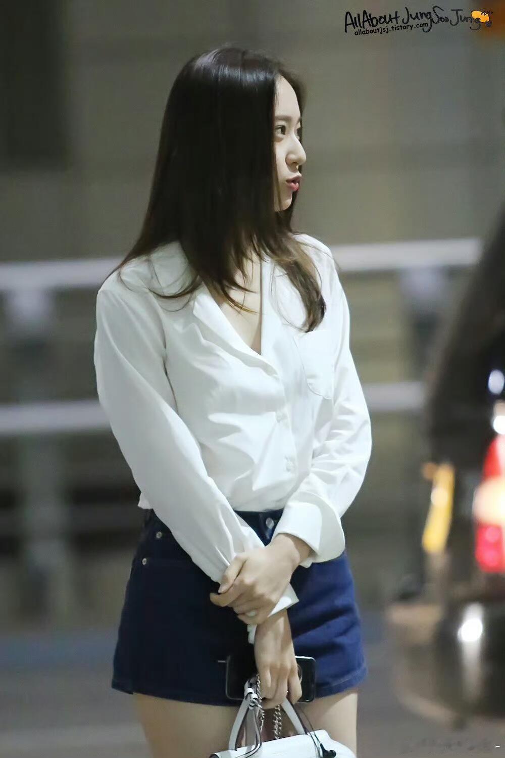 郑秀晶 十年前的机场图成为我后来很多年对白衬衫和白袜子的执念 这么简单的穿搭怎么有人可以搭配如此清纯可爱