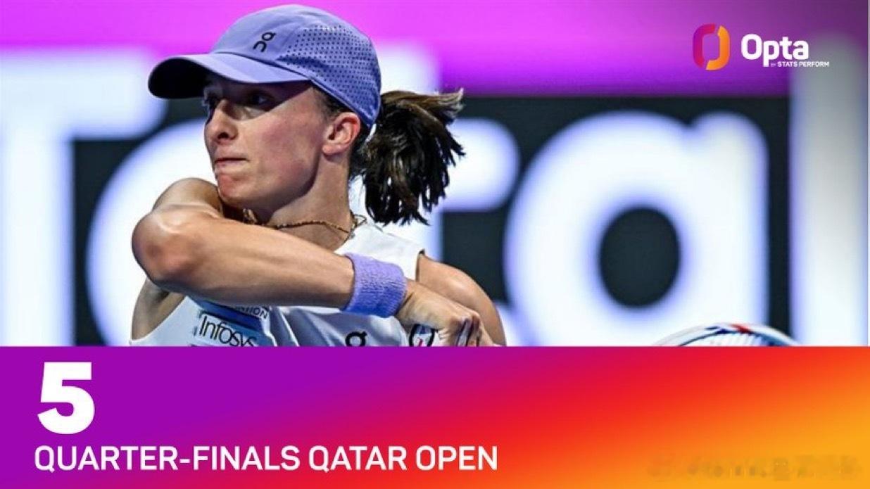 2️⃣斯瓦泰克是继a拉德万斯卡在 2012-16 年之后,第二位连续五年打入卡塔尔公开赛四分之一决赛的球员。