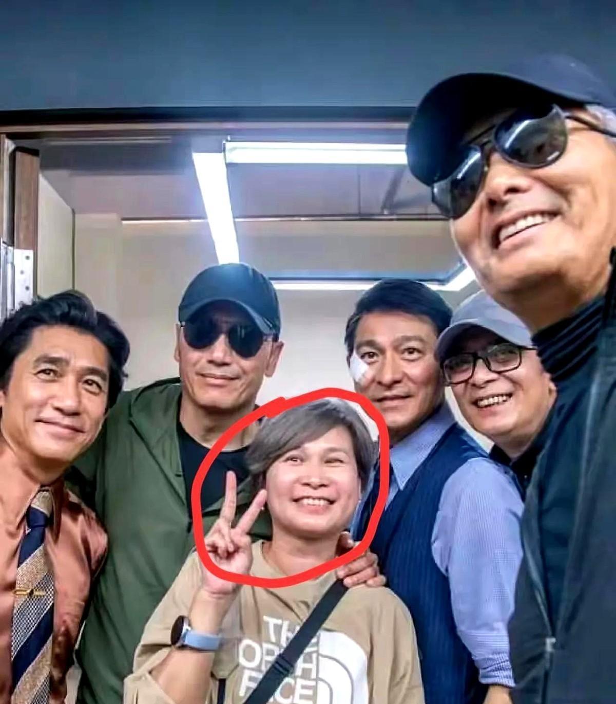 被五位巨星包围的这枚'月亮'是谁? 5位影帝同框,最酷的不是脸上贴着止痛膏的刘德华,也非两鬓斑白的周润发;最帅的不是个头矮小的梁朝伟,也非笑若暖阳的黄日华,而是戴着墨镜、雄浑沉健的苗侨伟!就想知道那位梳着斜刘海、笑容灿烂的素颜胖女是何方神圣?