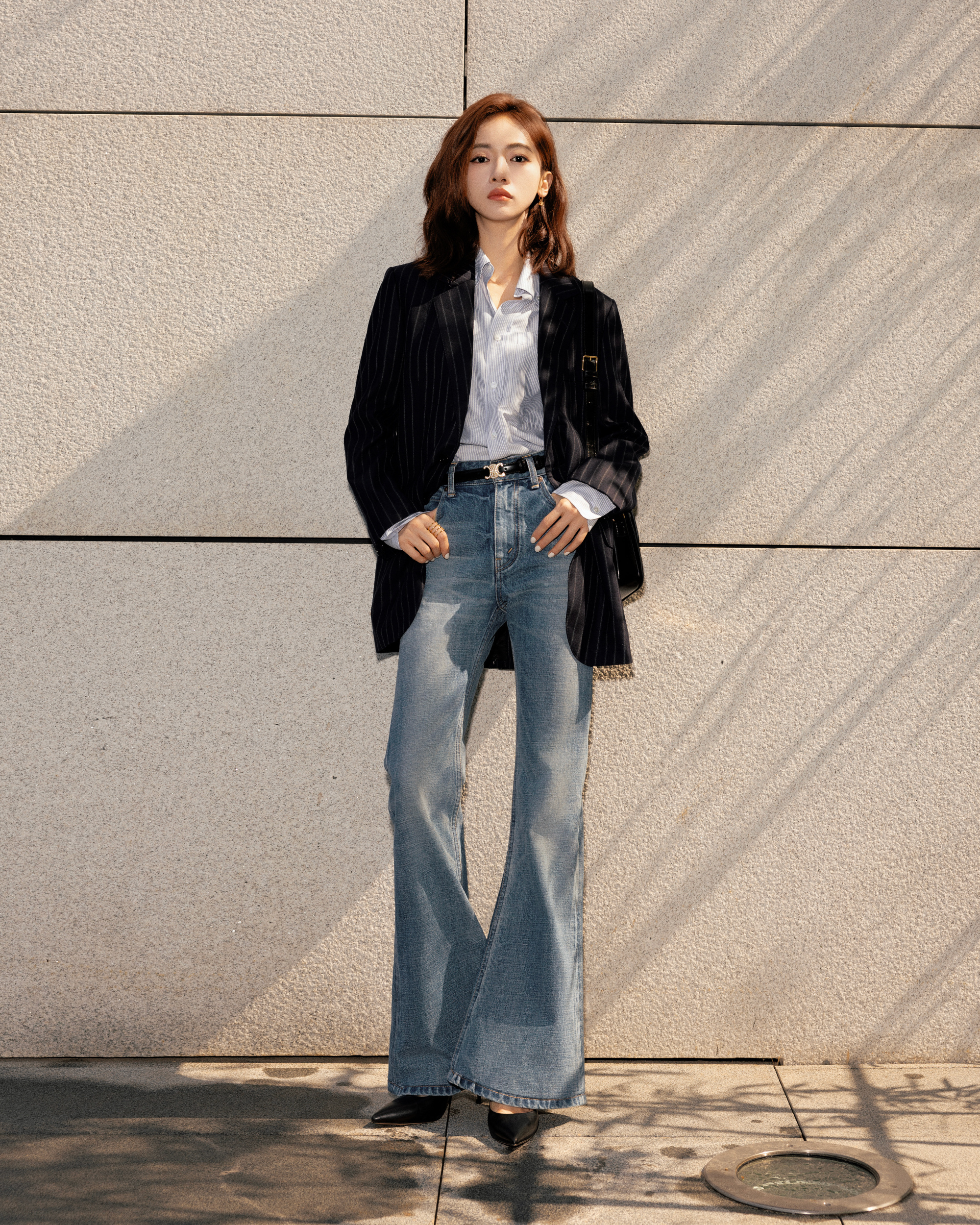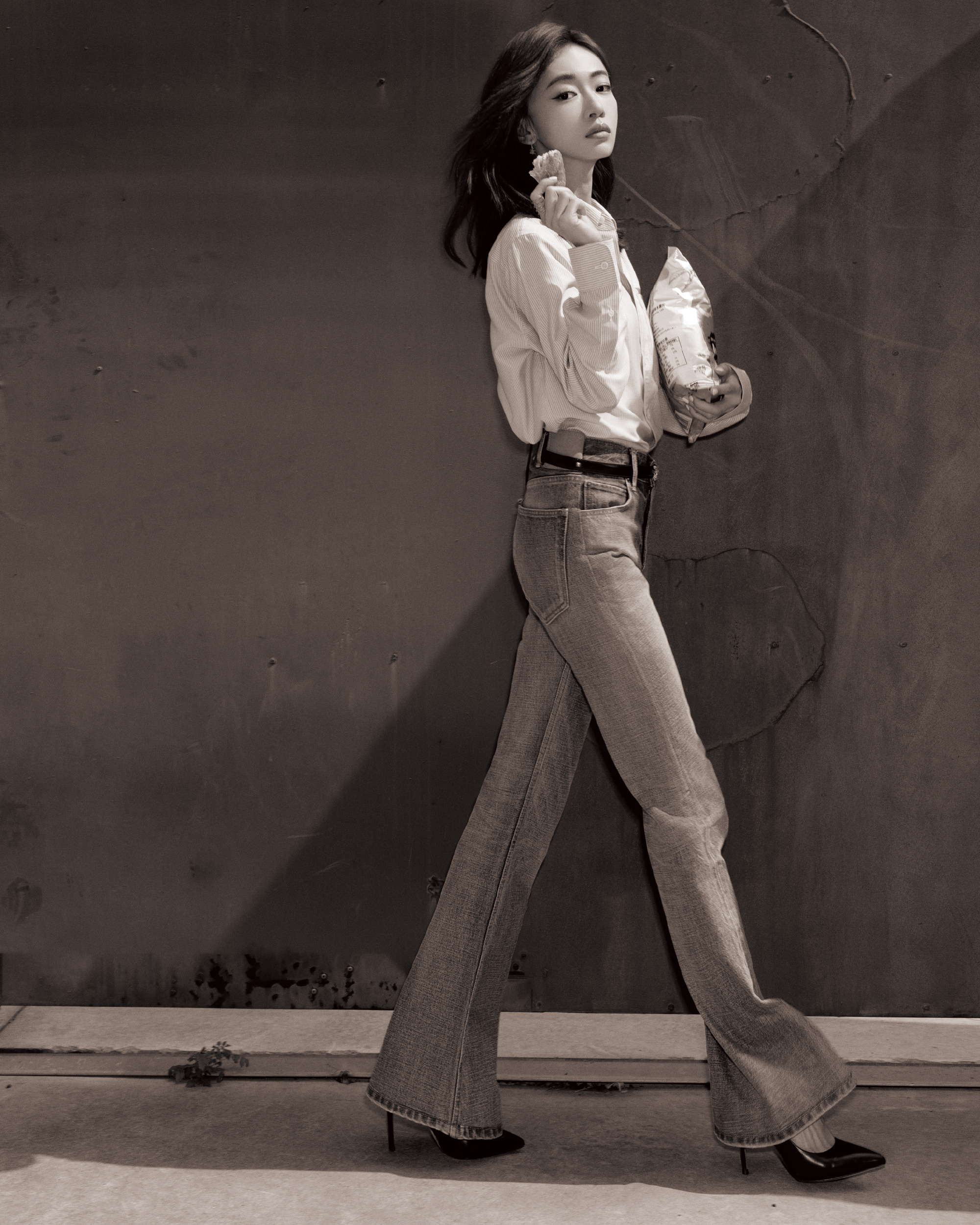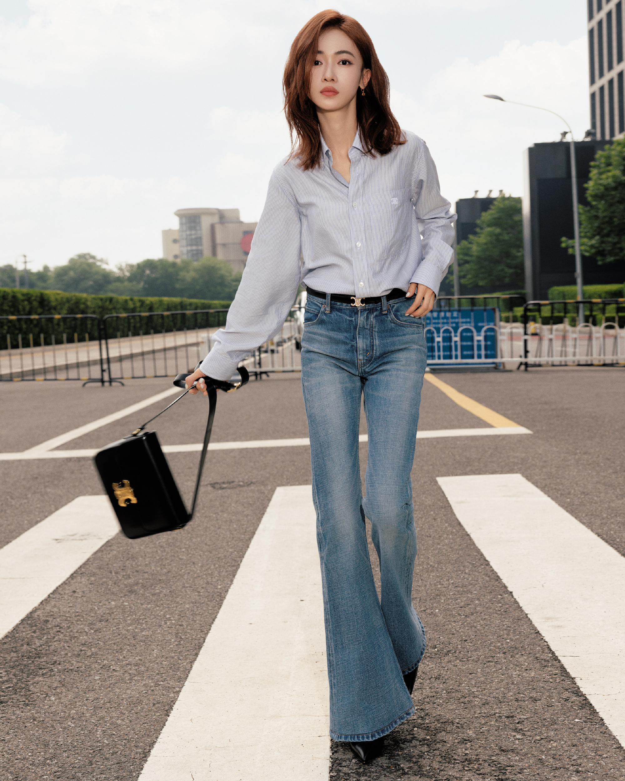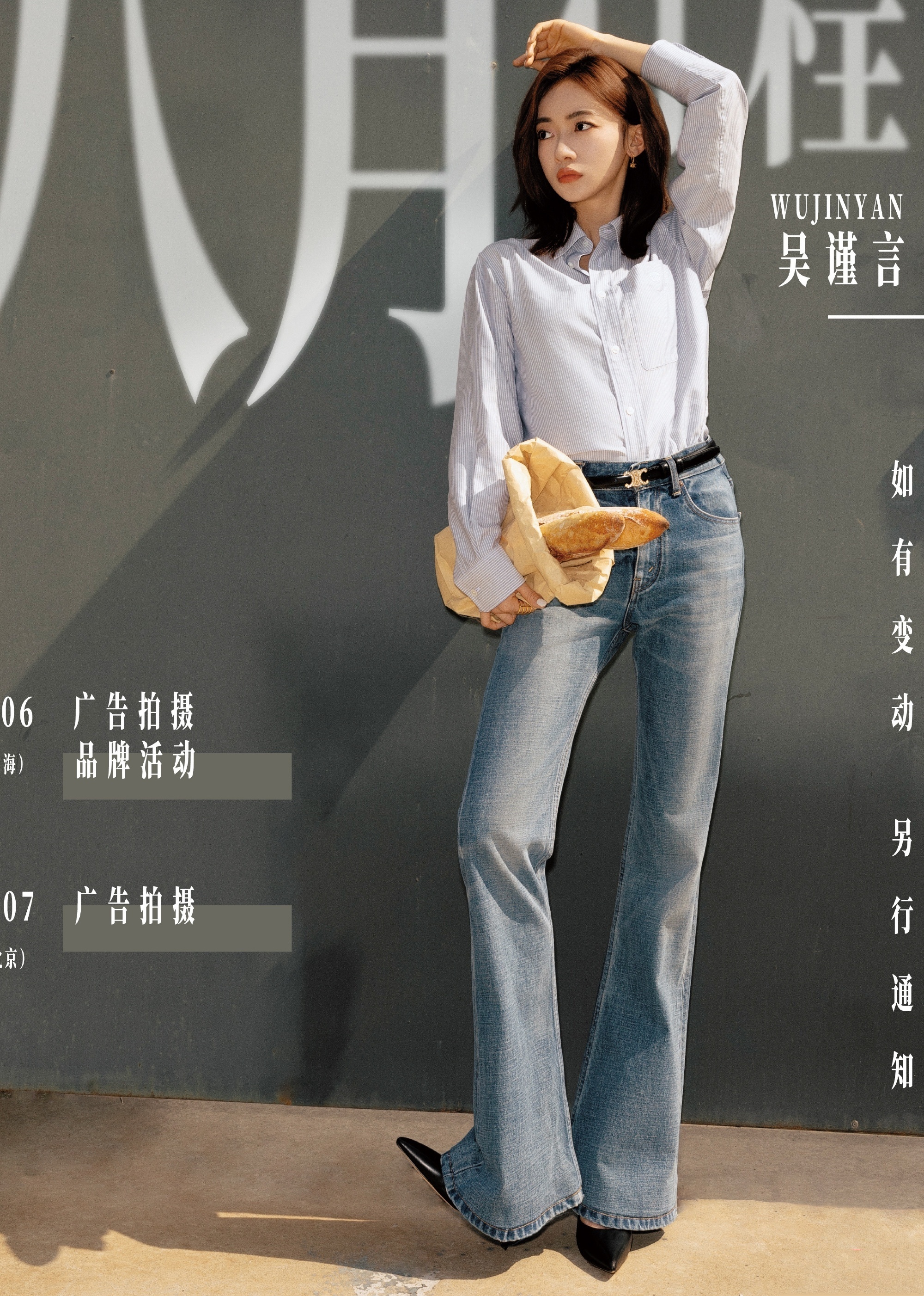 吴谨言,衬衣牛仔大长腿,青春靓丽。吴谨言