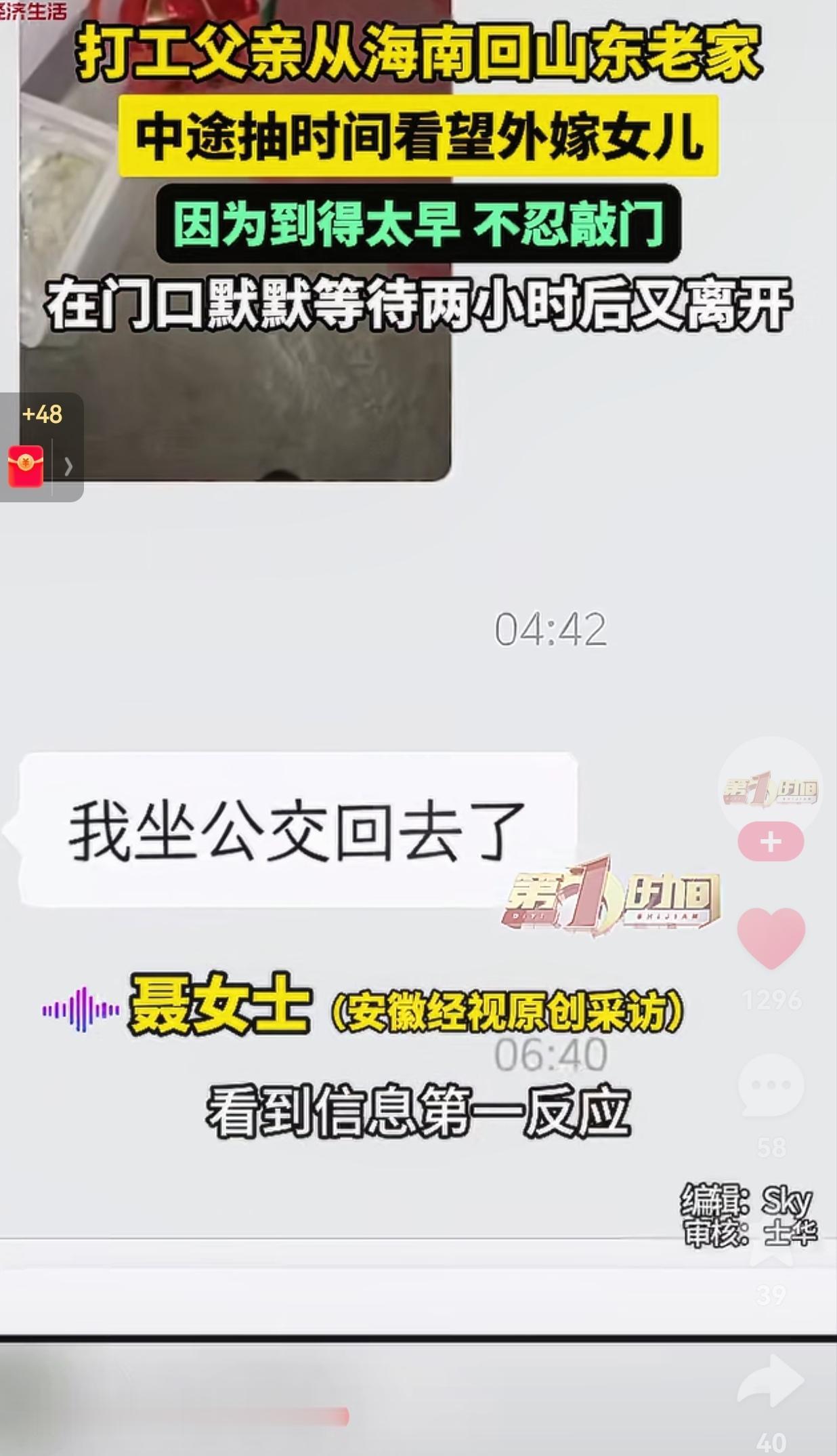 父亲总是把事情考虑得很周到,却唯独没有考虑过自己!山东泰安的聂女士,她爸从海南打工回山东老家,中途抽时间,特意来看望外嫁的女儿。 那天,老父亲坐顺风车到小区的时候天还早,他拎着大包小包的海南特产,站在女儿家门口,却没好意思敲门。 聂女士后来才知道,那天公公不在家,只有婆婆在。她爸怕打扰到女儿一家休息,也怕自己来得唐突,没有提前打声招呼,于是,老父亲就一个人在楼道里、在寒风里,默默等了两个多小时。 最后,看屋里还是没动静,他把带来的东西放在门口,给聂女士发了条消息:“我坐公交回去了”,就这样,老父亲一个人悄悄地来,又静悄悄地走了。 聂女士看到信息的那一刻,第一反应就是自责和心疼。她恨自己没能早点醒,恨自己没能及时回消息,更恨自己让父亲在寒风里孤零零地等了那么久。 网友看到后评论说:“我们总说父母是我们的后盾,可他们老了之后,连靠近我们,都变得小心翼翼。” 还有的网友说:“看到这个新闻,我直接破防了。我爸去年走的,他最后一次来我家,也是在楼下等了我半天,说怕打扰我带孩子。” 其实,父亲就是这个样子,他们明明是这个世界上最想我们的人,却总把“怕打扰”挂在嘴边。 明明已经跨越了大半个中国来看你,却连敲一下门的勇气,都要反复掂量。 在他们那辈人的观念里,当了父母,就该一辈子为孩子着想。哪怕孩子已经成家立业,在他们眼里,还是那个需要被照顾的小孩。 他们怕自己的突然到访,打乱了女儿的生活节奏。怕自己的存在,让女儿在婆家难堪。更怕自己的爱,变成了女儿的负担。 所以他们选择了沉默,选择了等待,选择了把思念和牵挂,都藏在那两小时的寒风里,藏在门口那袋沉甸甸的海南特产里,藏在那句轻描淡写的“我坐公交回去了”里。  其实我们都懂,父母的爱从来都不是理所当然的。 可我们常常忽略了,他们也会老,也会怕,也会在爱里变得小心翼翼。他们不再是那个能为我们遮风挡雨的超人,而是变成了那个需要我们主动伸手去拉一把的老人。 就像聂女士说的,她后来每次想起这件事,都忍不住掉眼泪。她后悔自己没有早点醒,后悔没有给爸爸打个电话,后悔让他一个人在寒风里等了那么久。 可人生哪有那么多如果呢?我们总以为还有很多时间,总以为“下次再陪爸妈好好聊聊”,可有些遗憾,一旦错过,就是一辈子。 针对此事,你有什么看法呢?欢迎大家评论区唠一唠。