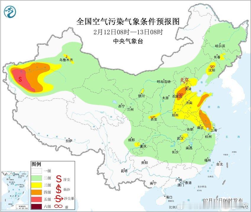 从今晨空气质量看,辽宁山东江苏部分地区有中度污染,辽宁葫芦岛、山东日照有重污染,对应有霾。新疆塔里木盆地的浮尘污染依然在持续,而且今后还会维持。预计12日至14日,华北中南部、黄淮中部等地大气扩散条件一般,部分地区有轻至中度霾。14日晚-15日冷空气南下,霾向南减弱消散。