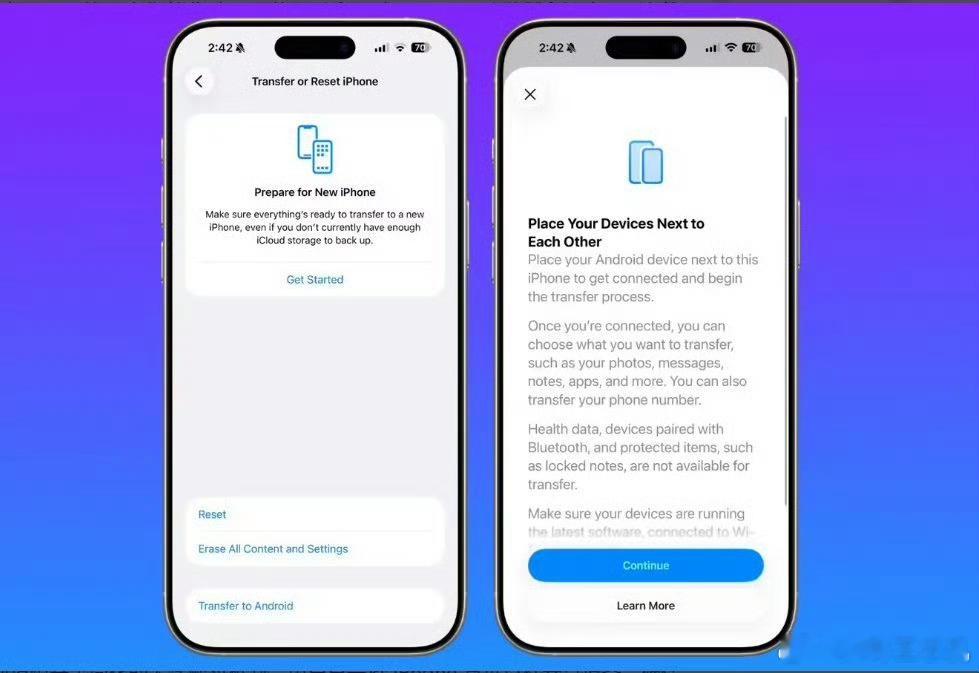 iPhone安卓无缝换机iPhone终于可以跟安卓无缝换机了,这两大系统早就该合作利民了,有多少人是因为系统用习惯了不愿意换手机的,换机体验还得是安卓,不过现在大家都可以尝试互换了,这功能整挺好。