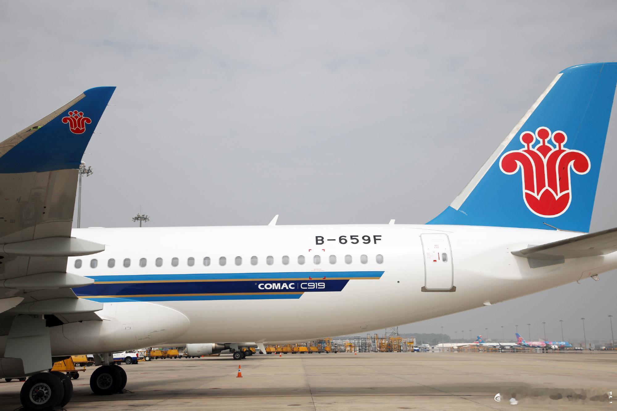 南航第九架C919国产大飞机正式投入运营,注册号B-659F。