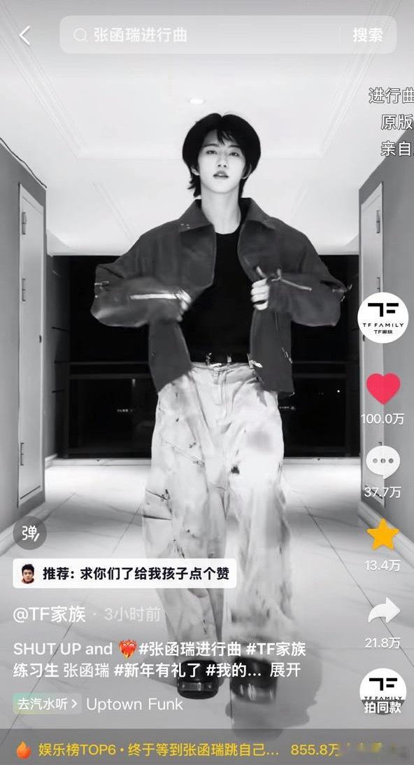 🫘tf家族单人cha张函瑞跳了自己的进行曲3小时9分钟100w点赞