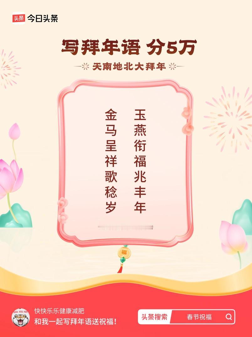 写拜年语送祝福新春拜年送祝福!我的祝福是:“金马呈祥歌稔岁,玉燕衔福兆丰年”!快
