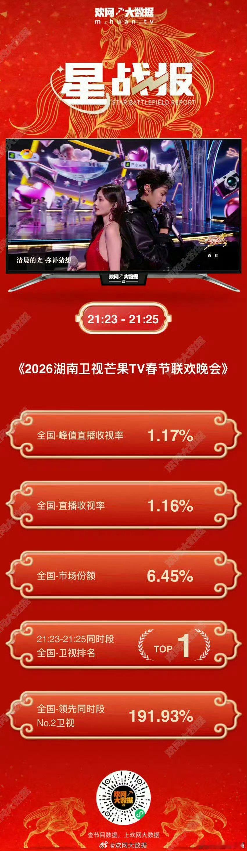 湖南卫视春晚收视率湖南卫视小年夜春晚酷云平均0.8744,峰值1.1492!