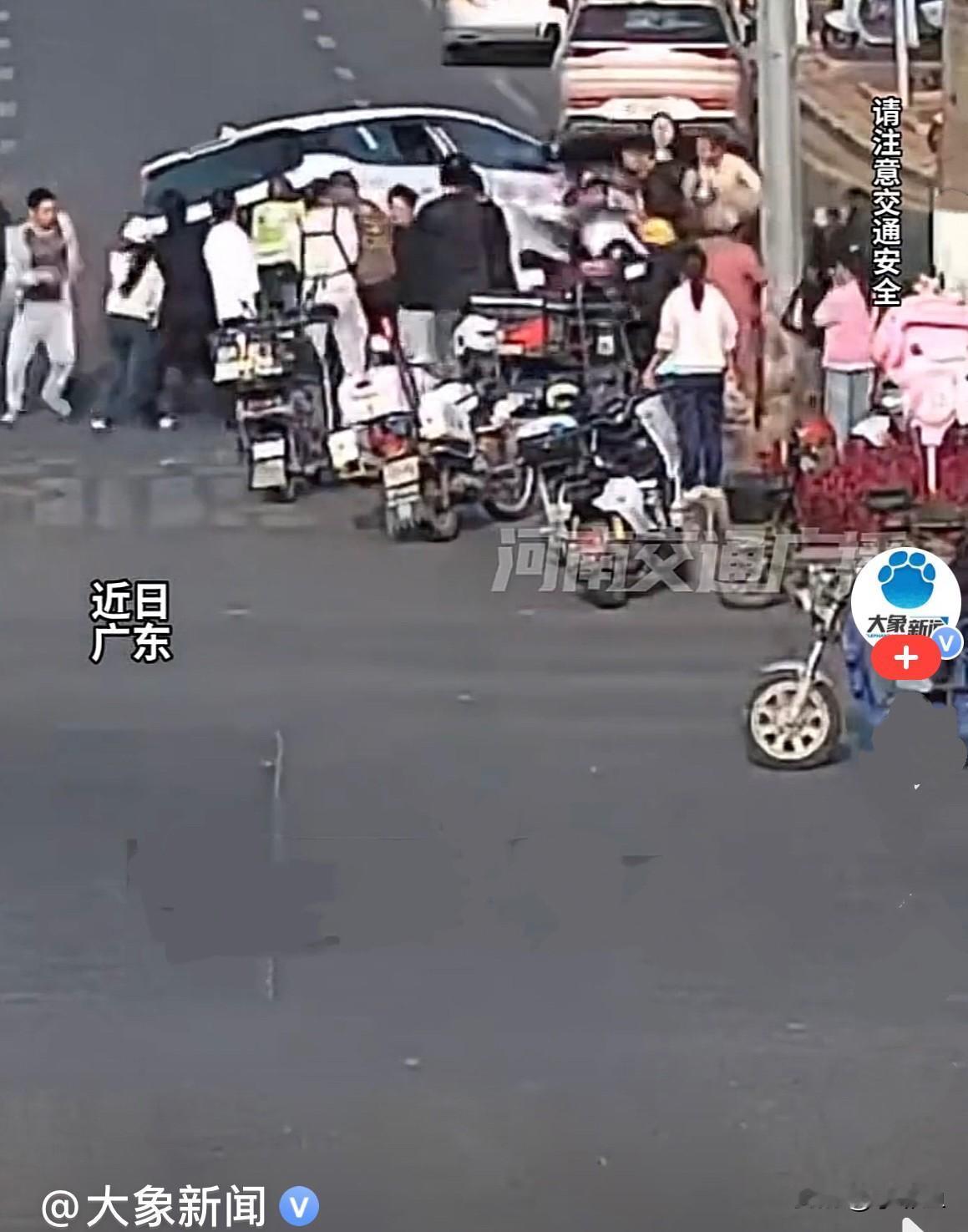 近日,广东一繁华的街道上,车辆川流不息,人来人往,一辆轿车不慎碰倒电动自行车,人被压在轿车底下,情况危急…… 一下子交警和路过的群众纷纷飞奔过来营救…… 只听一女子大喊:“来帮忙抬车”. 又有更多的群众蜂拥冲车而来,数十名热心的群众合力抬车,成功将被困人员救出,此刻“众”字具像化了…… 为热心的你们点赞[赞]