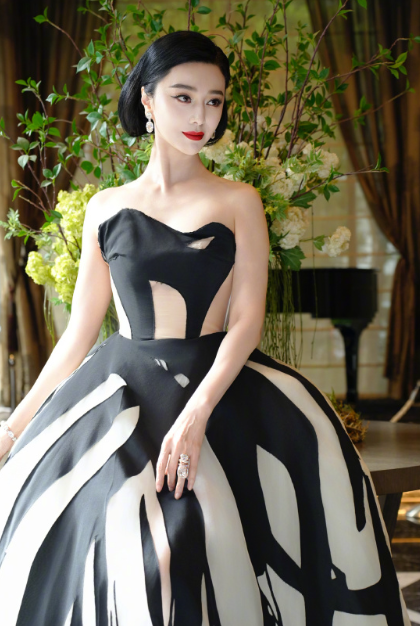 范冰冰身穿复古黑白礼服太好看了