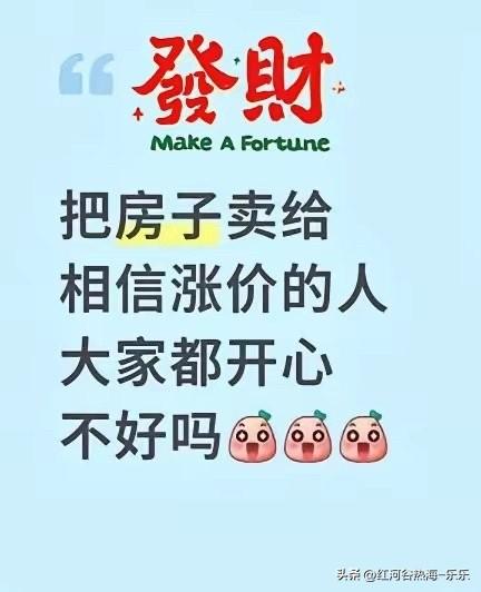 奈何我现在手头上没有房产,如果有马上按市场价卖给那些认为今年房价上涨的人。 这样实现双赢,大家都能开开心心过大年,多好。