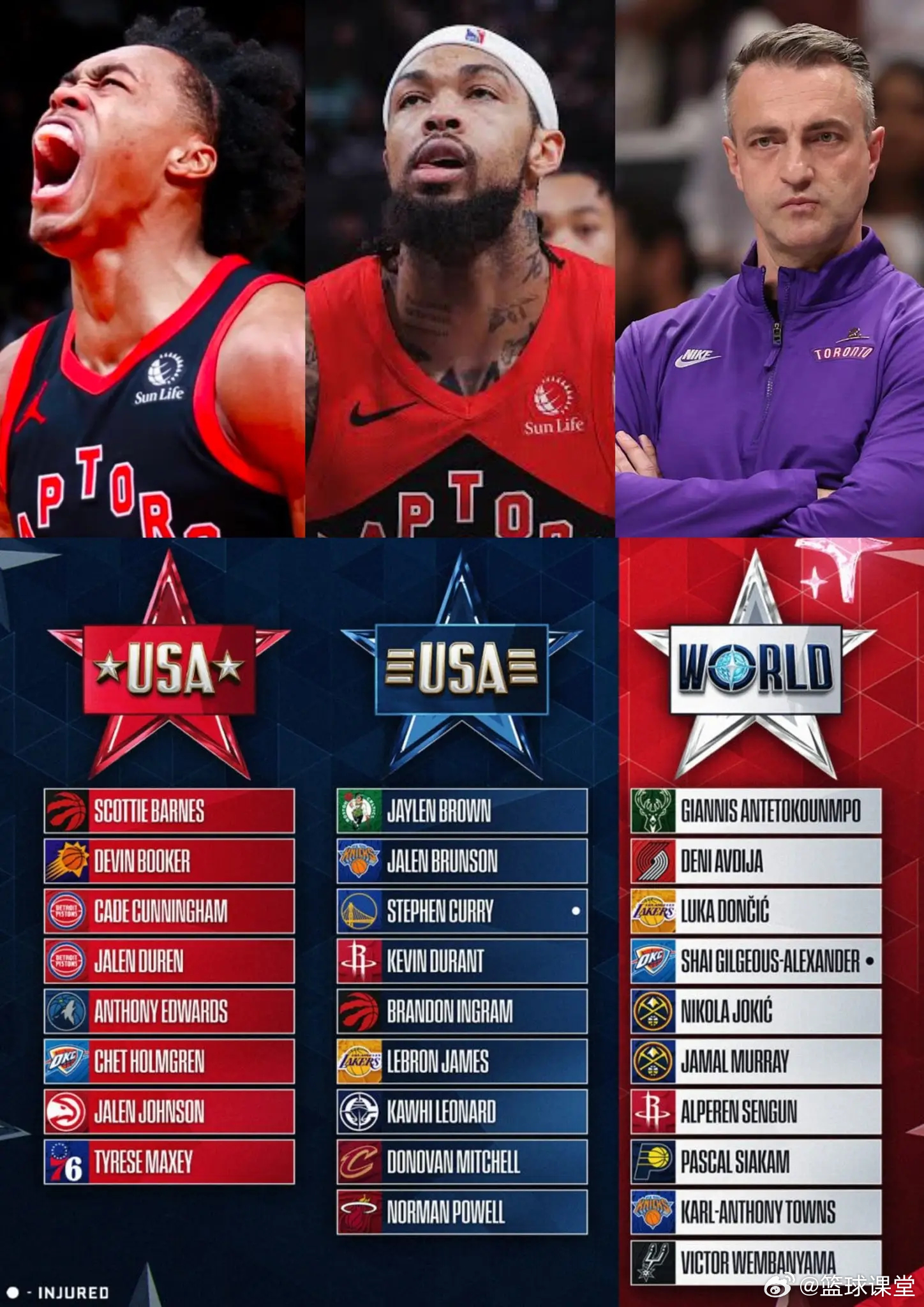 猛龙队是NBA唯一一支在三支全明星阵容中都有人入选的球队。