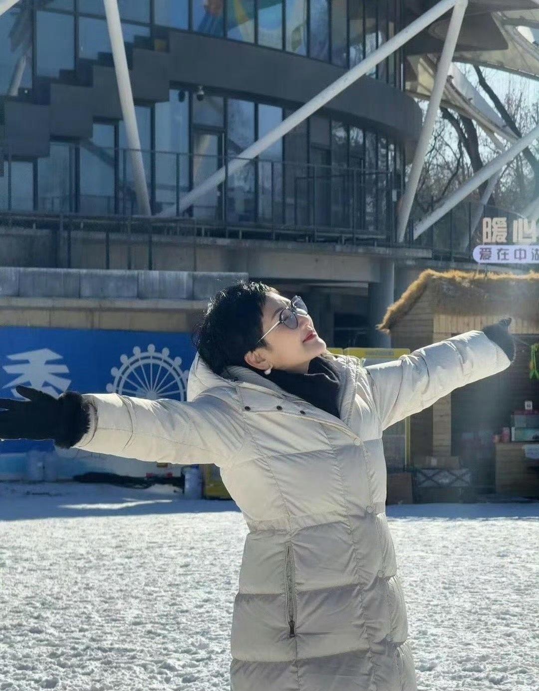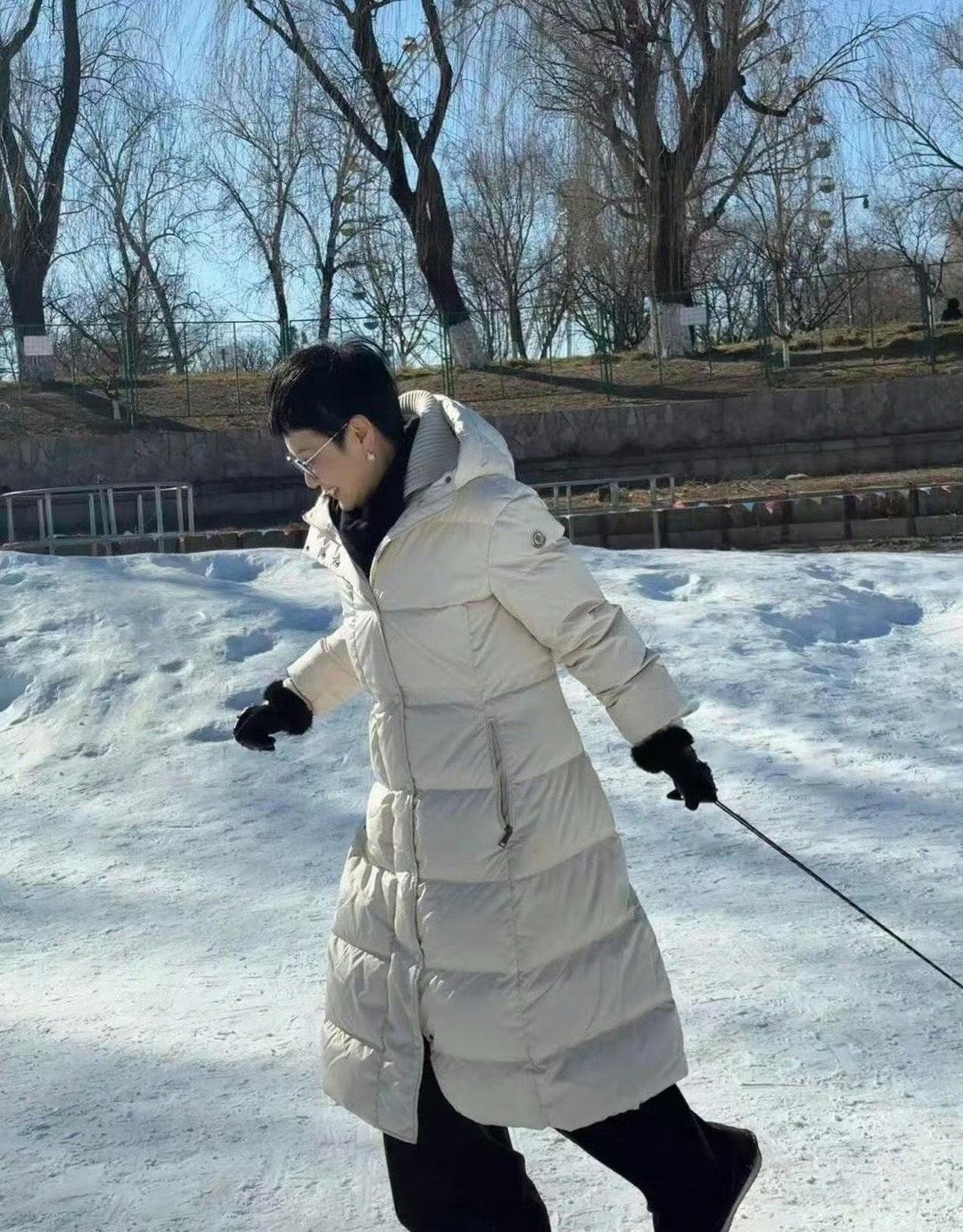 63岁张凯丽的老年穿搭也太会了!白色羽绒服搭配黑色围巾与直筒裤,简约利落,时髦又显高级感。