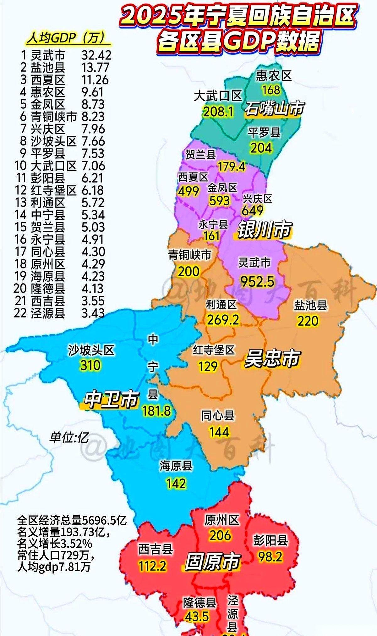 刚刷到宁夏去年的经济成绩单,一张表,两个世界。 一个县,贺兰,是全区唯一一个倒着走的。 而它地图上的邻居,灵武,油门踩到底,总量、增量、人均,一口气拿了三个全区第一。都在银川眼皮子底下,一个急刹,一个起飞。 就在大家眼光都盯着这俩的时候,另一头的中卫,一声不吭,弯道超车,直接把增速的旗子给拔了。 最重的叹息,给了石嘴山。 这座老牌工业城,机器的轰鸣声好像还在昨天,但今天却踩了刹车,增速全区垫底。转型的路,每一步都像踩在碎玻璃上,深一脚浅一脚。 最后,是那个沉默的巨头,银川。 整张桌子上的菜,它一个市,不动声色地吃了超过一半。整个宁夏的资源、项目、人,像被一个看不见的巨大水泵抽过去,只听见轰隆隆的声响。 你说,这是大树底下好乘凉,还是大树底下不长草?