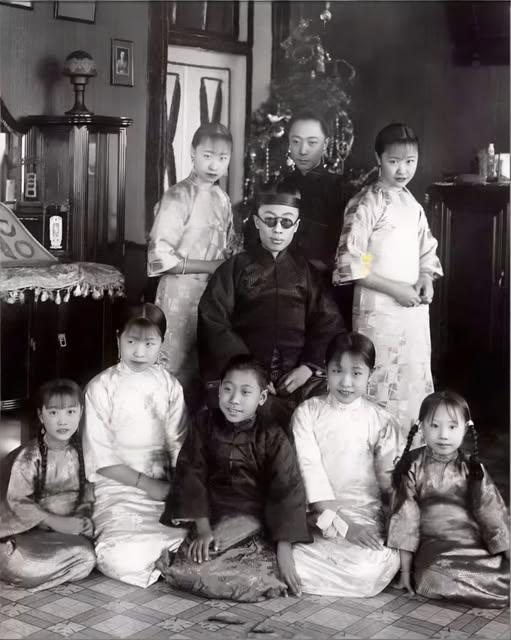 这张照片是清朝末代皇帝溥仪与他的弟妹们在天津寓所的珍贵合影,拍摄于20世纪20年代末至30年代初,此时溥仪已退位,以逊帝身份在天津过着寓公生活。 中坐者是清朝末代皇帝溥仪,此时虽无皇权,但仍是家族核心。后排左一是二弟溥杰,溥仪最亲密的弟弟,伪满时期成为宫廷近臣,后排左二是大妹韫龢,嫁给郑孝胥之孙郑广元,后排右一是溥仪最疼爱的妹妹三妹韫颖,嫁给婉容之弟润麒。 前排中是四弟溥任,后改名金友之,是溥仪兄弟中最长寿的一位。前排左二是四妹韫娴,前排右二是五妹韫馨,前排左一是六妹韫娱,前排右一是七妹韫欢,后改名金志坚,是家族中第一个自由恋爱结婚的成员,被称为“末代皇姑”。 这张照片是爱新觉罗家族少有的完整家庭合影,这些曾经的皇族成员,在时代洪流中各自走出了不同的人生轨迹,最终都融入了新中国的普通生活,成为历史变迁的生动注脚。