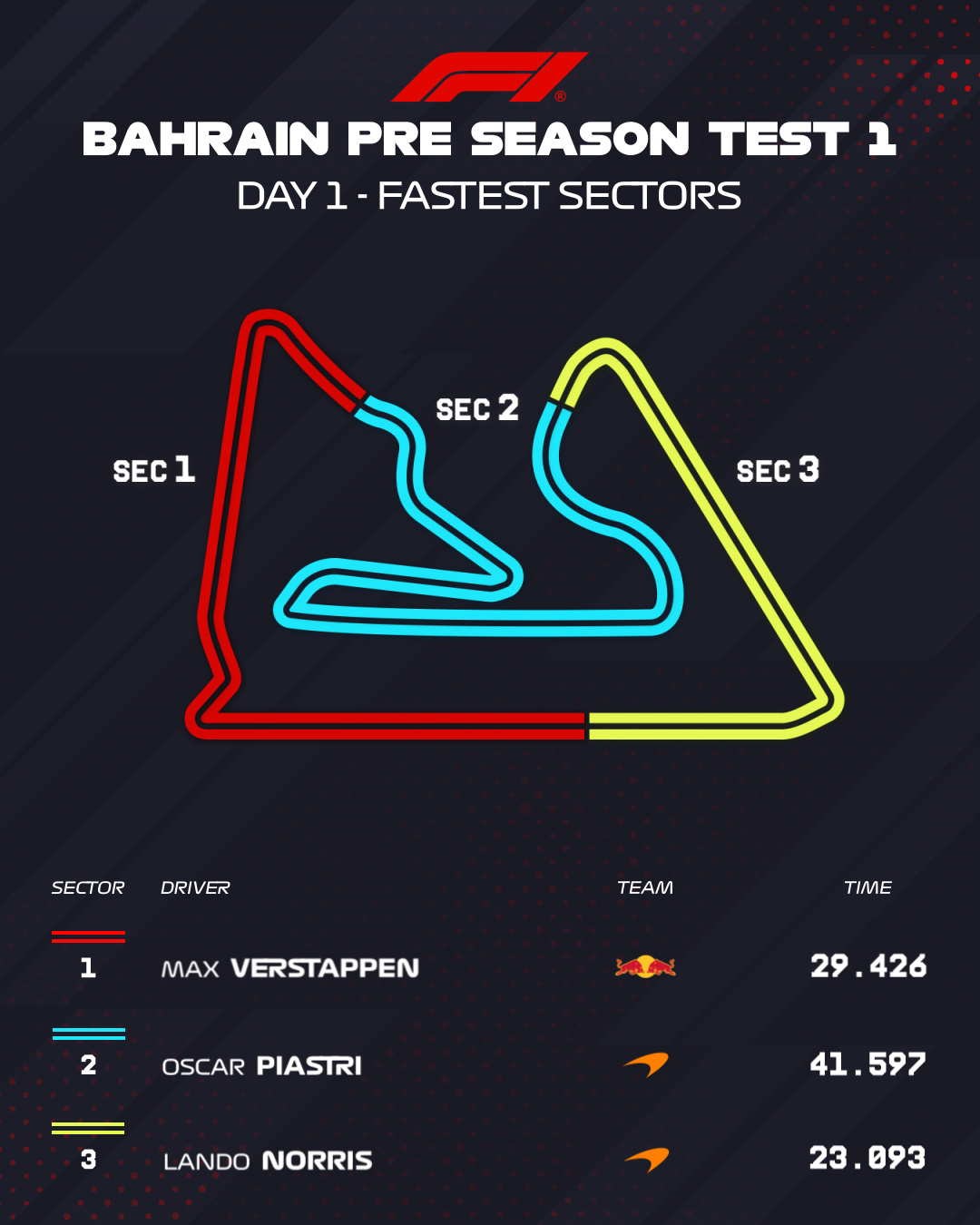 F1巴林季前测试首日小结:诺里斯最快,阿潘最勤奋,红牛尾速最高,马丁则好像有点“危危乎”……