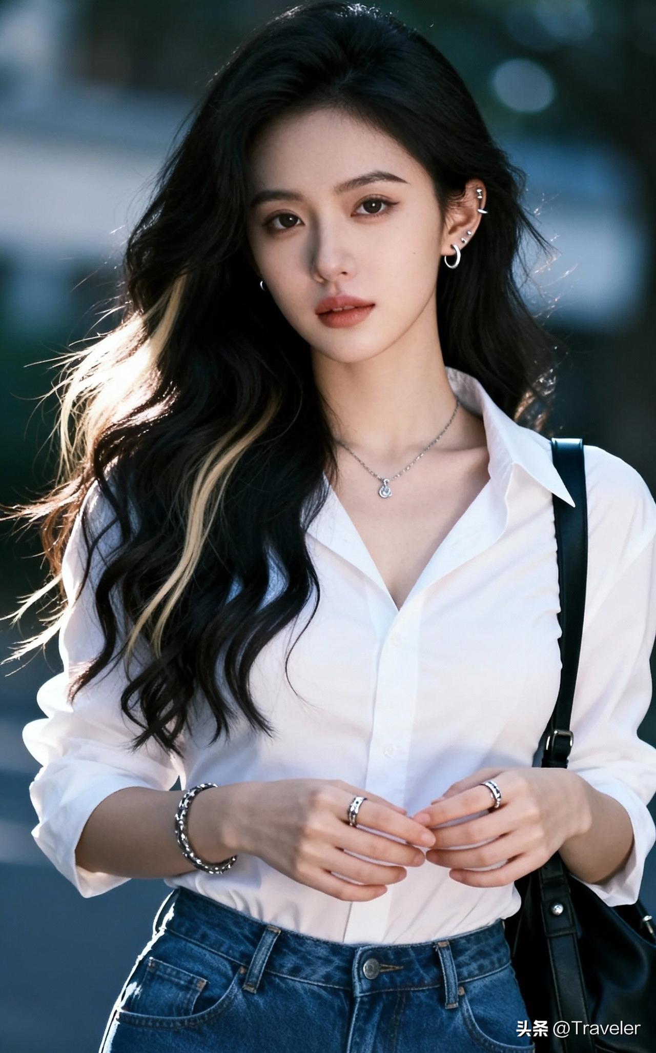 夜晚的都市,粉裙少女倚栏望车流,浪漫而梦幻。