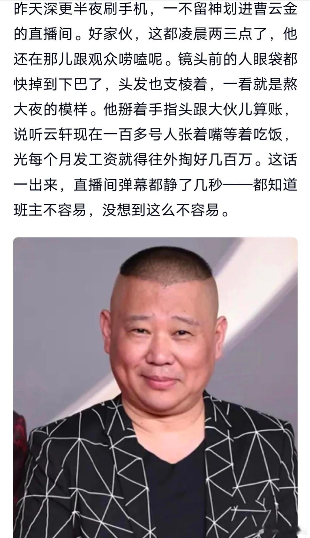 曹云金凌晨直播诉苦水,现在才懂郭德纲