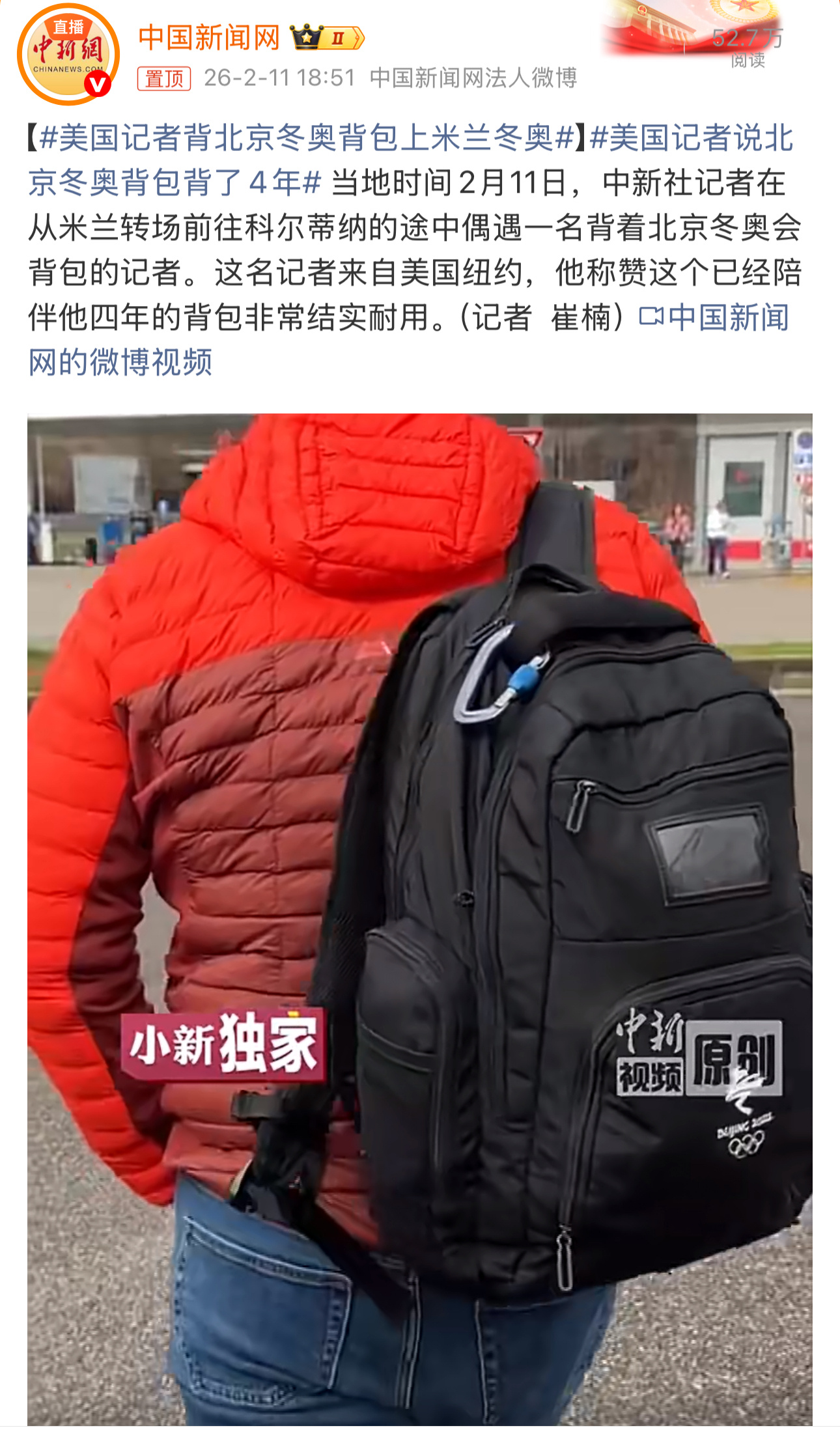 美国记者背北京冬奥背包上米兰冬奥热点观点 美国记者背北京冬奥背包上米兰冬奥