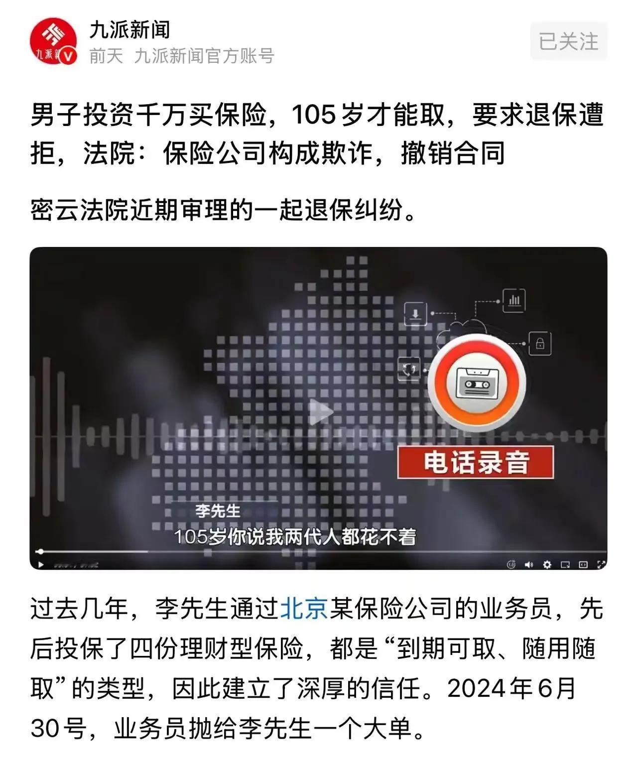 200万保费当天就交,合同却藏着大猫腻,1000万本金竟要等到105岁才能取?这究竟是保险还是“长寿陷阱”? 近日,有网友爆料,在保险业务员的催促下,他当天就签下了合同,并一次性缴纳了首期保费200万元,后续还计划追加至1000万。然而,当他静下心来仔细翻看那本厚达50页、密密麻麻全是小字的合同时,却越看越心凉。合同中所谓的“五年可取”,原来只是每年能领取几千块的“生存金”,而真正的1000万本金,却必须等到他年满105周岁才能一次性领取。这种“长寿险”被网友怒批为文字游戏,用“终身”、“传承”等华丽词汇包装,实则是把钱锁死几十年,吃定你活不到领取本金的那天。这种保险乱象不仅让消费者感到愤怒和失望,更引发了大家对保险行业的信任危机。 保险本是风险管理的工具,如今却成了某些人玩文字游戏的道具。大家在购买保险时一定要擦亮眼睛,仔细阅读合同条款,避免陷入类似的陷阱。快来评论区分享你的看法,一起揭露保险乱象!保险套路大曝光 保险骗局 保险迷惑行为