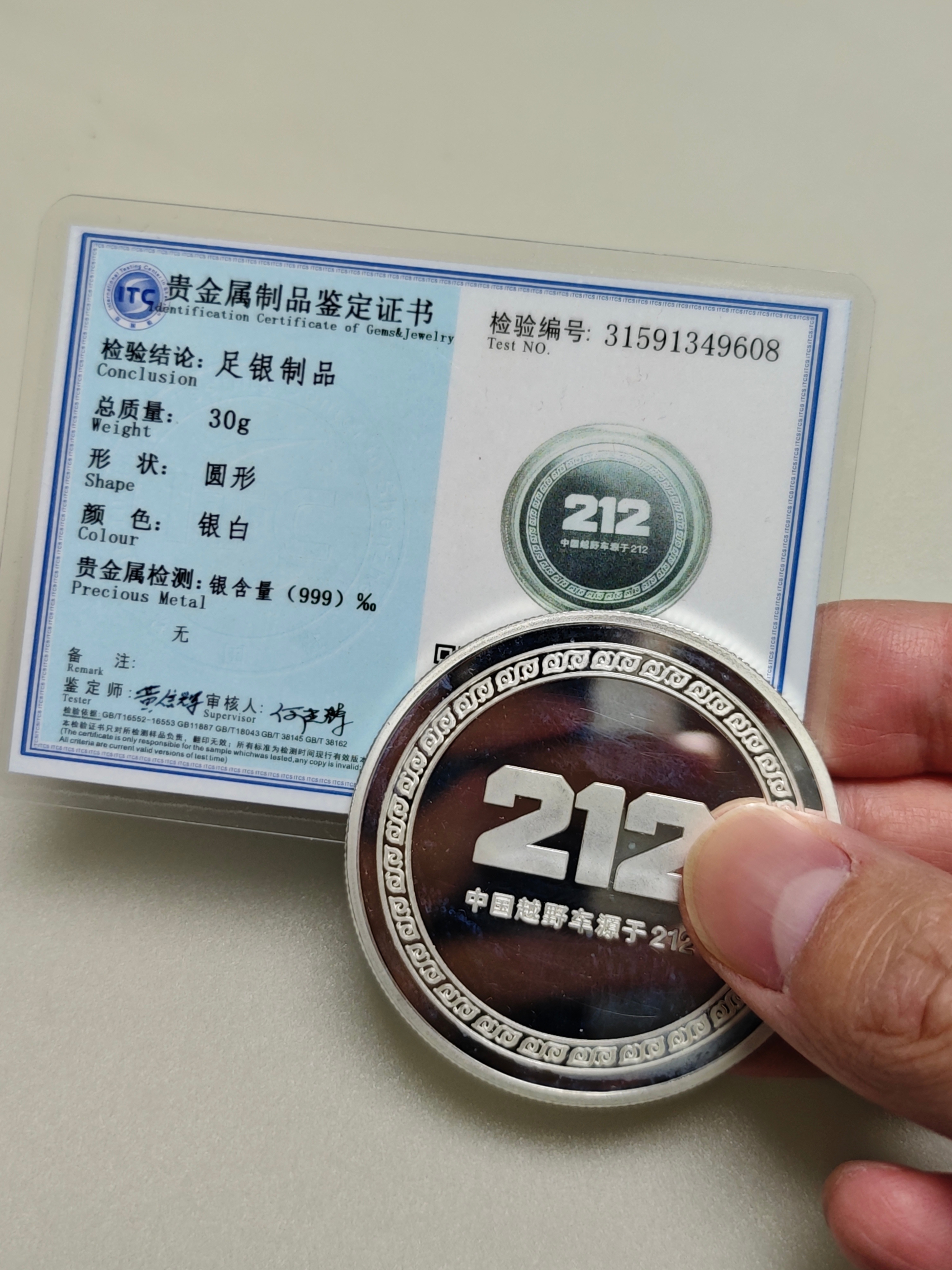 翻到之前212送的一个小纪念品,30克足银