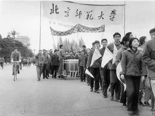 1976年,北京师范大学师生走上街头欢庆粉碎“四人帮”。