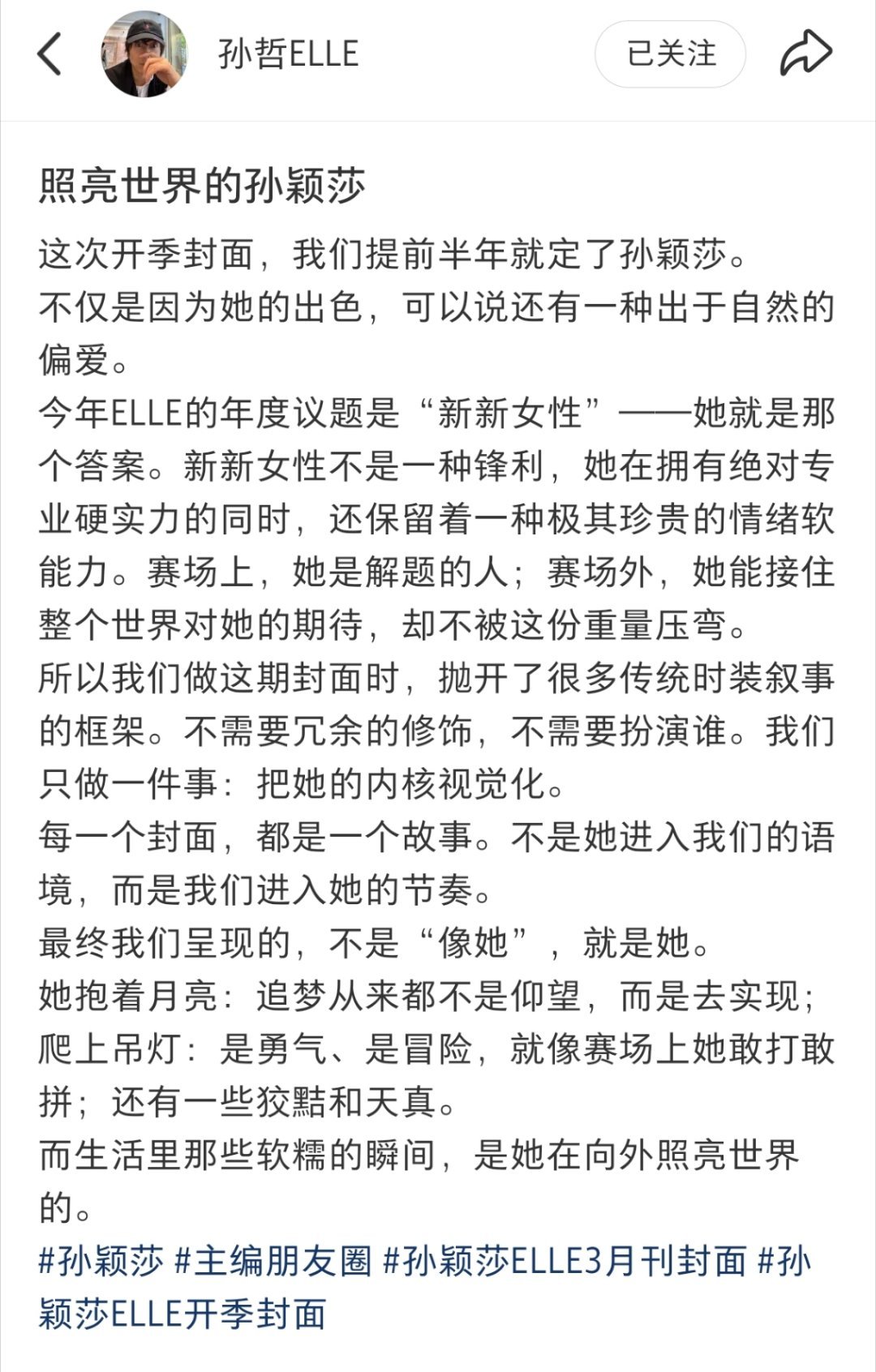 孙颖莎elle开季封面 「生活里那些的软糯的瞬间,是她在向外照亮世界的」☀️好会